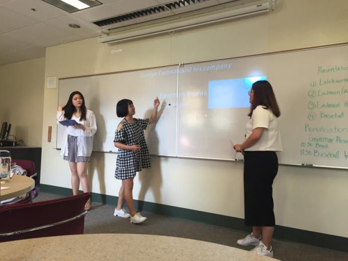 同学们与来自俄罗斯,尼泊尔,和中非等国家和地区的学生一起学习,体验美国的课堂生活。虽然每天上午的学习时间都很长,但是大家都乐在其中,收获颇多。课堂上老师风趣幽默,帮助大家提高英语的听说读写能力,在15人左右的小班教学的优势环境下,同学们在课堂上可以随时与老师进行互动,发表自己的看法。