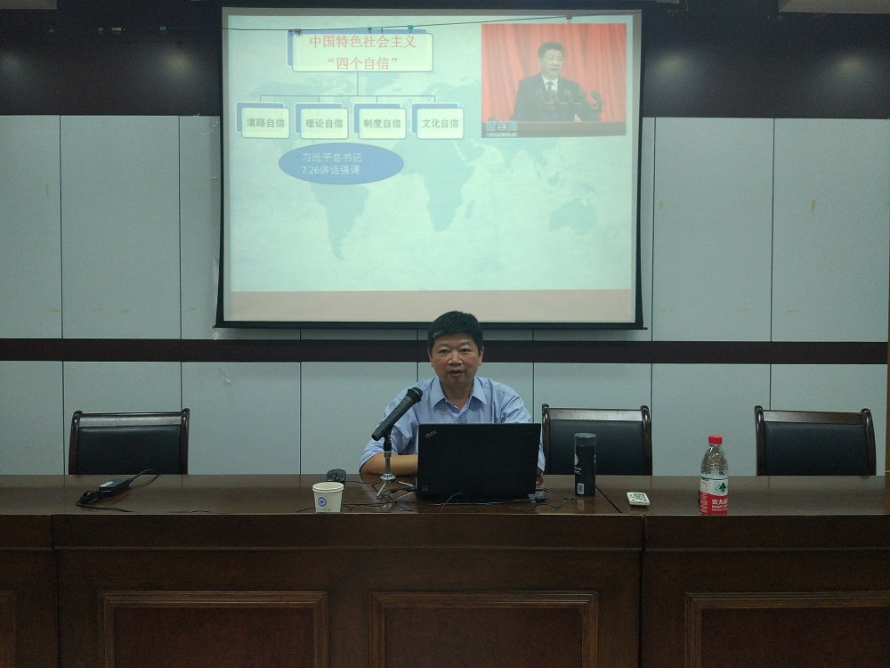 潘卫民教授以“翻译中的文化自信”为题,以《毛泽东选集》英译本为例,向教师们阐述了中国特色社会主义 “四个自信”在翻译文化传承中的地位与作用,深入浅出地对翻译中的文化自信进行了全方位的解读。作为中国翻译界的工作者,文化自信也是当代翻译活动践行文化“走出去”战略的必然要求。潘教授以《毛泽东选集》英译本中的诸多实例,展示了老一辈翻译家精益求精、一丝不苟的翻译态度和出神入化的翻译成果。