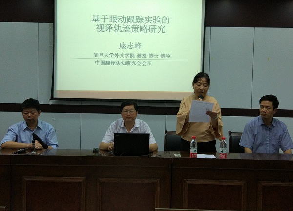 应学院邀请,中国认知翻译研究会会长、复旦大学的康志峰教授与中国认知翻译研究会秘书长、上海电力学院外语学院院长潘卫民教授,于9月29日来访外国语学院。两位教授首先与学院院长王小潞教授和院长助理周汶老师交流了我院承办的“一带一路”背景下翻译认知研究国际研讨会(11月10~12日)的筹备情况,并实地考察了会场、住宿安排等。随后,康教授和潘教授分别作了两场精彩的学术讲座。讲座由周汶老师主持。