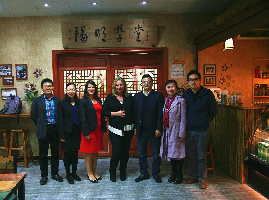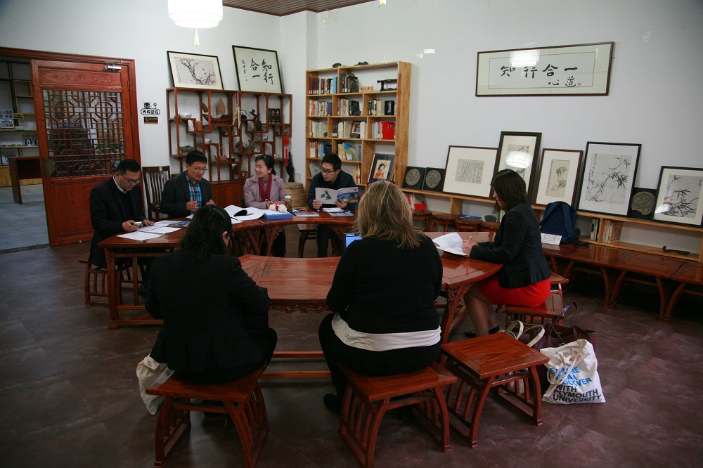 2017年11月13日下午,英国普利茅斯大学(Plymouth University)的国际部中国区经理Nicola Seth,人力资源管理系主任 Jasmine Kelland和普利茅斯大学中国项目联络人Rebecca Peng一行来访浙江大学宁波理工学院外国语学院,期间,双方就深入校际合作、推进商务英语专业国际人才培养,开展3+1+1双学位项目等方面进行了讨论,达成了共识。学校外事处程萌处长、外国语学院蔡亮副院长、商务英语专业的廖家栋老师和项目协调人丁旭老师在阳明学堂接待了英国来宾。此外还有商英专业的近20位同学参加了英方老师组织的宣讲会。