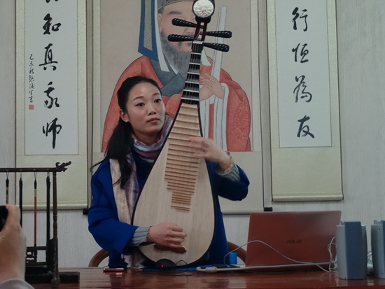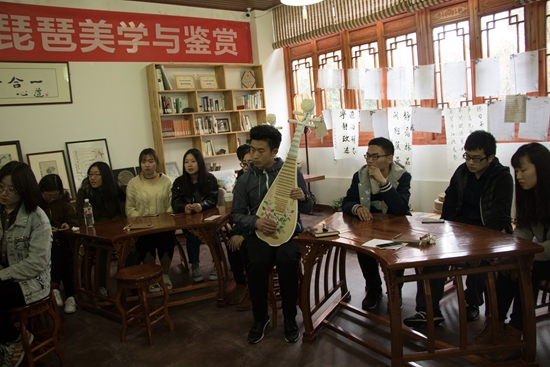 3月30日下午,学校传统文化美学导师、青年琵琶演奏家应锦阳在阳明学堂作琵琶美学与鉴赏专题讲座。