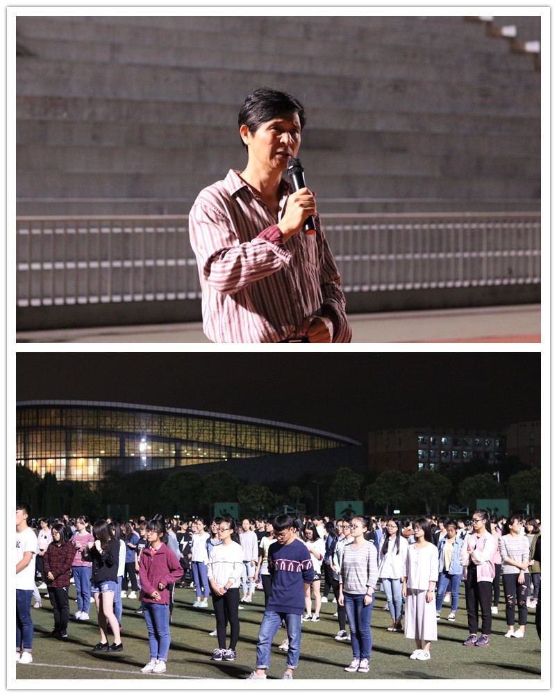 10月20日晚,外国语学院运动会宣誓动员大会在北操场举行。外国语学院党总支书记谌晓煜,法政学院体育专业教师孙倩,外国语学院相关辅导员、学生会全体成员、新生班助、参赛选手和2016级新生参加了活动。