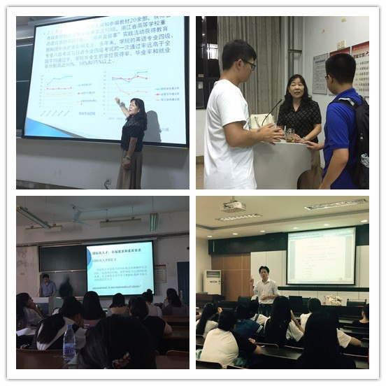 9月23日下午,专业导航之商务英语专场讲座在SB308举行,2016级商务英语专业学生聆听了专业教师周汶的专题报告。周老师以商务英语专业发展沿革开场,着重介绍了商务英语与其他英语、翻译类专业的区别和联系,并为同学们解读了商务英语专业人才培养要求与内涵,希望同学们修炼思想素质、专业素质、职业素质、文化素质和身心素质五种素质,掌握语言、商务、跨文化、人文社科和跨学科五种知识,培养英语应用、跨文化交际、商务实践、思维与创新和自主学习五种能力。最后,周老师以英语专业杰出代表马云先生的成功事迹为例,鼓励同学们认真规划大学生活,成就最好的自己。