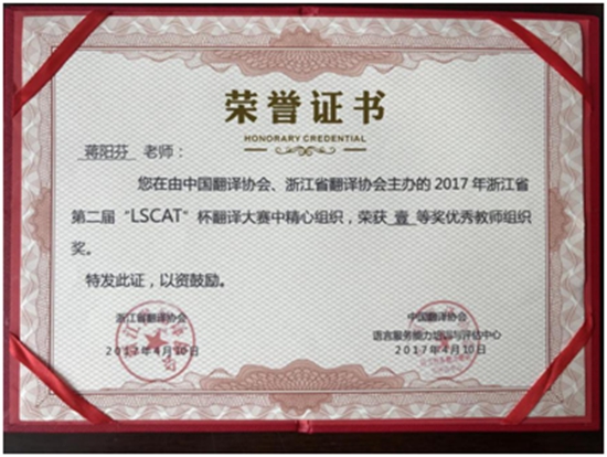 外国语学院对此次比赛高度重视。赛前,由蒋阳芬老师负责对参赛的同学进行了统一集中培训。我校同学于本次“LSCAT杯”笔译大赛中取得斐然成绩,是对同学们刻苦努力学习的肯定,也得益于外国语学院长期重视对学生的实践实训、综合语用能力的培养。希望同学们鞭策自我、再接再厉,将来斩获更多荣誉,为学校增光!