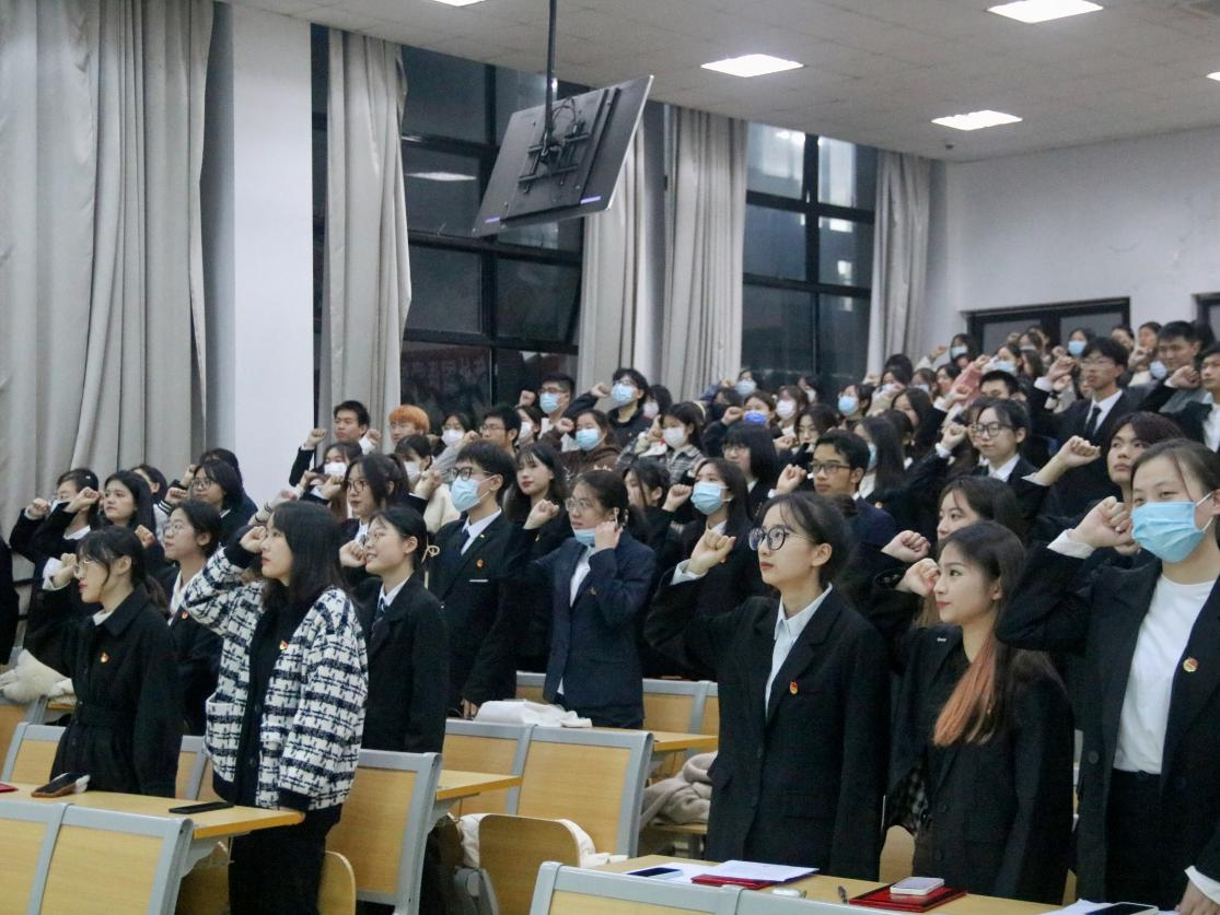 2022年11月29日晚,外国语学院团学大会暨第十一期团校开班仪式于SB104顺利进行。学院党委副书记任凯老师,党委委员、兼职辅导员胡海鹏老师,团委副书记洪雨菲老师、思政副主管阮佳蒂老师、外院班助及团学各组织成员等参加此次大会。