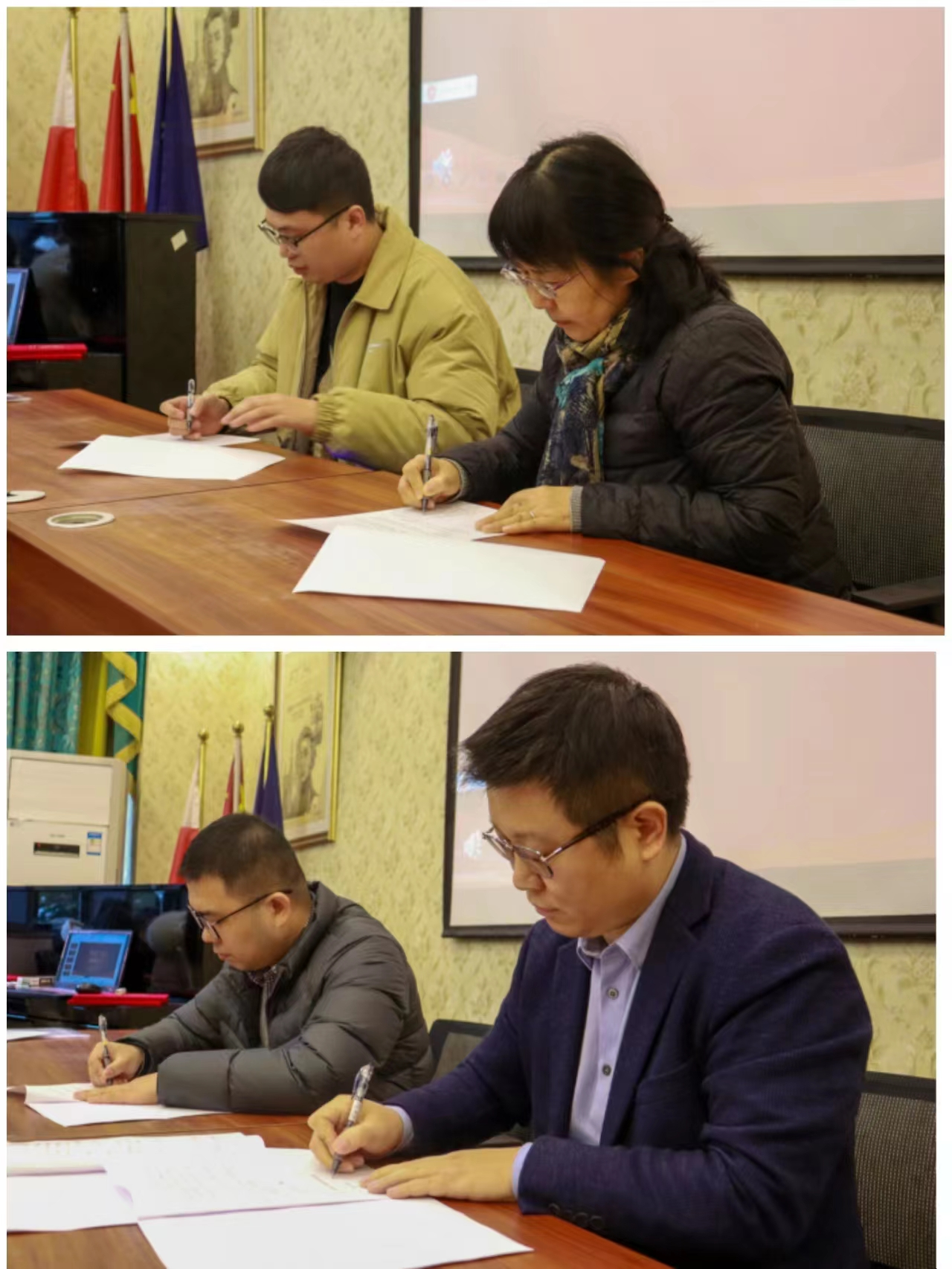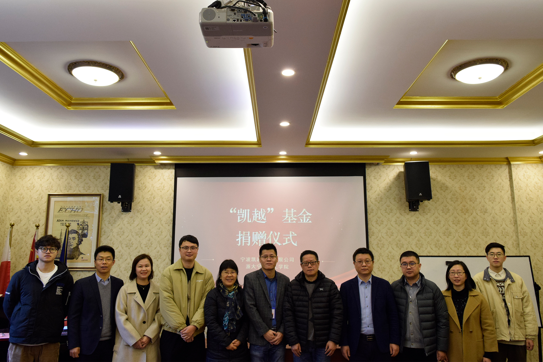 12月7日上午,外国语学院和商学院在波兰研究中心举行“凯越”基金捐赠仪式。宁波凯越集团营运事业部董事总经理朱吉,凯越集团陆尊国贸董事经理、2007届商学院校友梅廷,凯越集团凯欧事业部董事经理、2011届外国语学院校友李俊及人事部助理,浙大宁波理工学院副校长、教育发展基金会理事长鲁东明,招就处副处长、学校教育发展基金会秘书长张硕,外国语学院党委书记傅晓宇、商学院党委书记马翔、外国语学院党委副书记兼纪委书记任凯、商学院党委副书记兼纪委书记吴琼和学生代表参加活动。捐赠仪式由任凯主持。