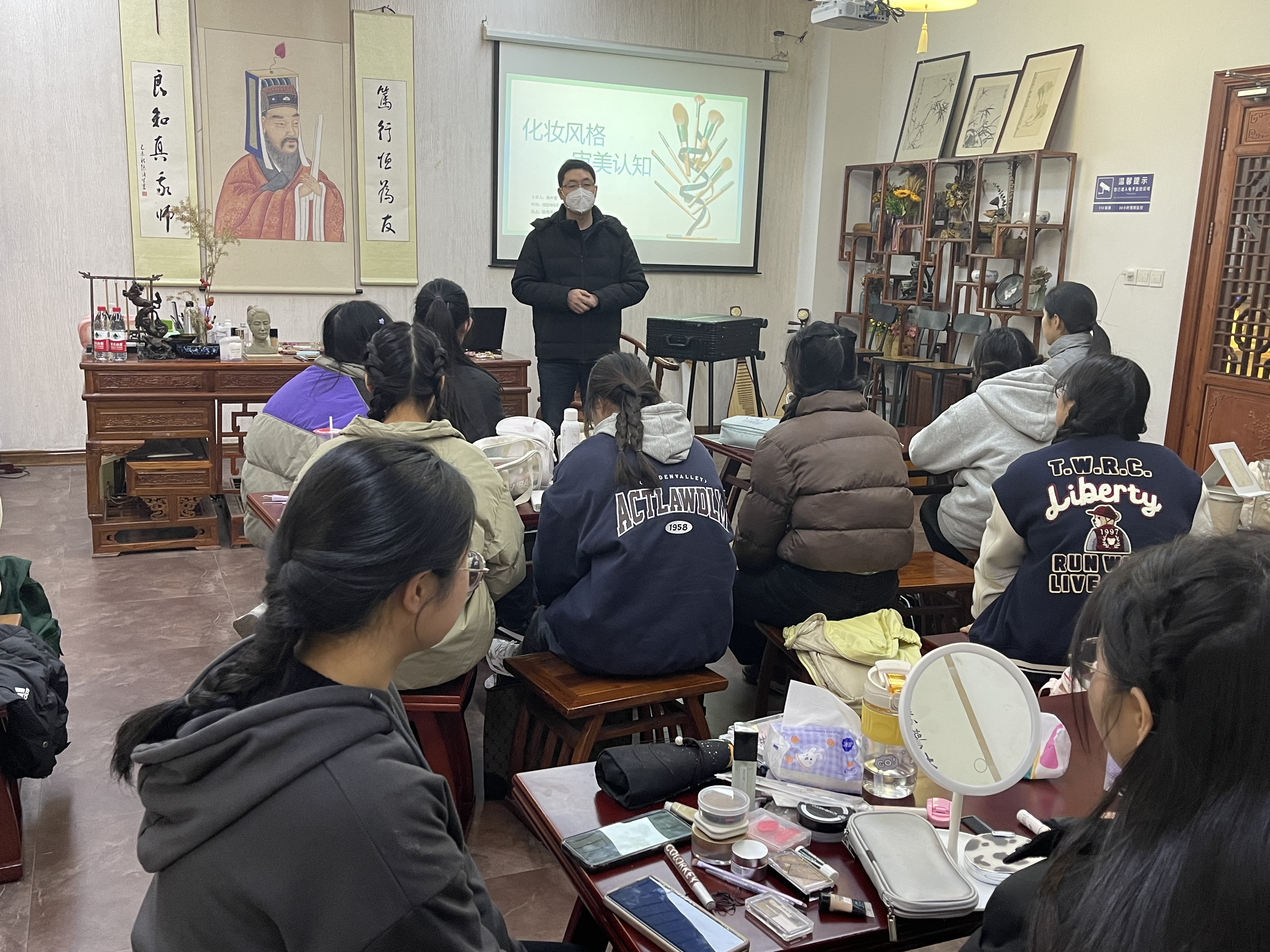 本期形象美学专班由团委、教务处、宣传部、招就处、外语学院联合建设,分别围绕“化妆风格审美认知”、“生活妆要点指导与体验”、“古典妆容认识与体验”、“古典盘发认识与体验”、“职业妆要点指导与体验”五个主题展开。学校党委宣传部部长李炜老师、招就处副处长张硕老师、外语学院思政主管芦美丽老师参加了活动。希美造型工作室创始人、鲸宝集团合作化妆师姚叶青女士为26名博雅课堂学员带来了为期2天的形象美学讲座,通过理论讲解、现场演示、实践体验,指导各位学员求职面试妆、日常妆及整体形象设计等实用化妆技巧,提高大学生发现美、传承美、创造美、展现美的能力,加强学生对传统美、健康美的认知。