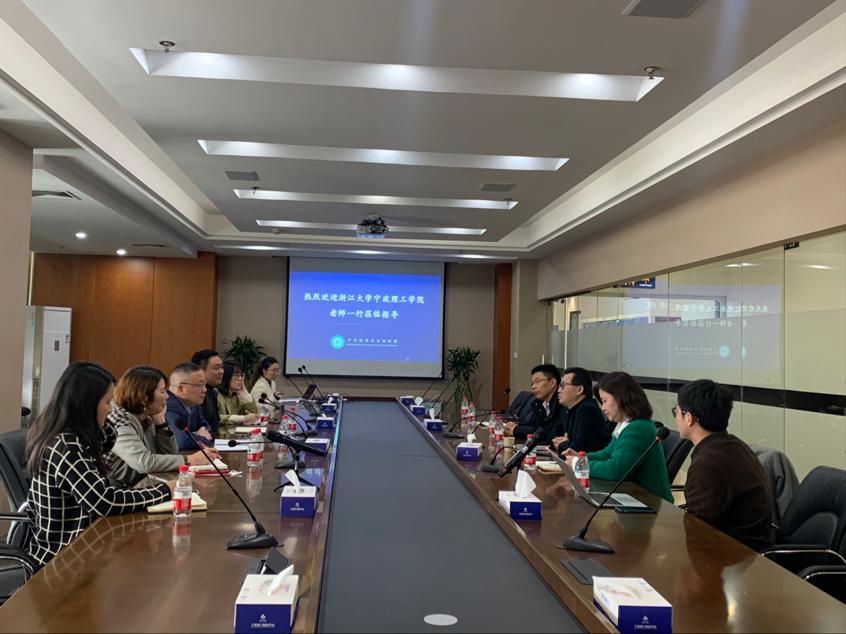 中东欧商品采购联盟执行会长兼秘书长、中宁化集团有限公司工会主席邹宗华,联盟执行秘书长胡宇飞,宁波诺柏医药有限公司业务部经理、外国语学院2008届校友王银萍,宁波雅滋食品有限公司品牌部经理俞秋艳、综合管理部经理钱琼热情接待浙大宁波理工学院一行。