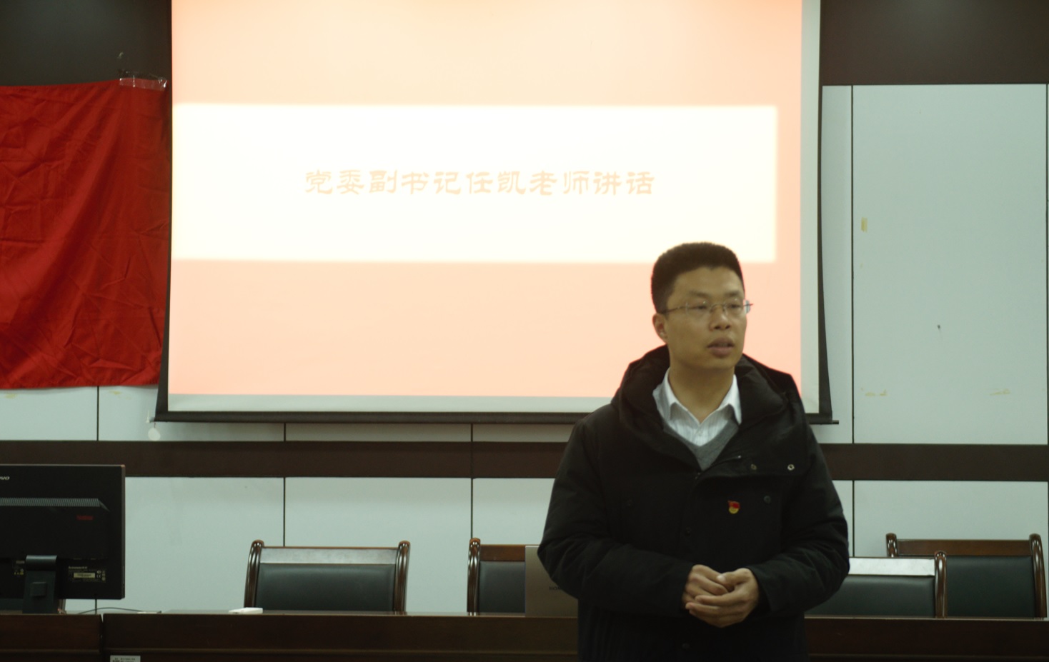 活动中,学院党委副书记任凯老师进行了发言,希望党员同学们胸怀祖国,将自己的前途和祖国的命运相结合,自觉肩负起新时代中华民族伟大复兴的责任和使命。同时任老师也希望新党员们时刻牢记入党誓词,坚定理想信念,在学习生活中发挥共产党员的先锋模范作用,以实际行动贯彻好党的二十大精神,为党旗增光添彩。