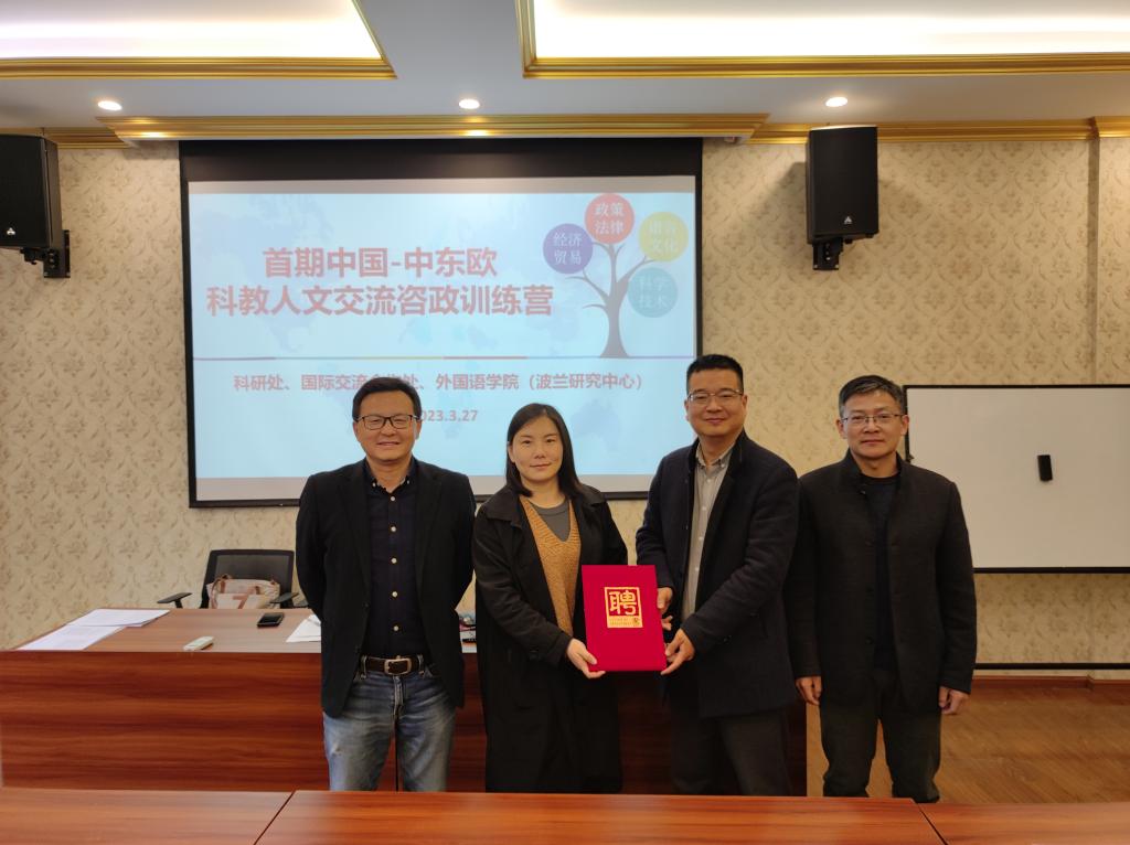在会前,波兰研究中心副主任胡海鹏老师向陈芳鑫颁发聘书,聘请她担任波兰研究中心首席咨政专家。