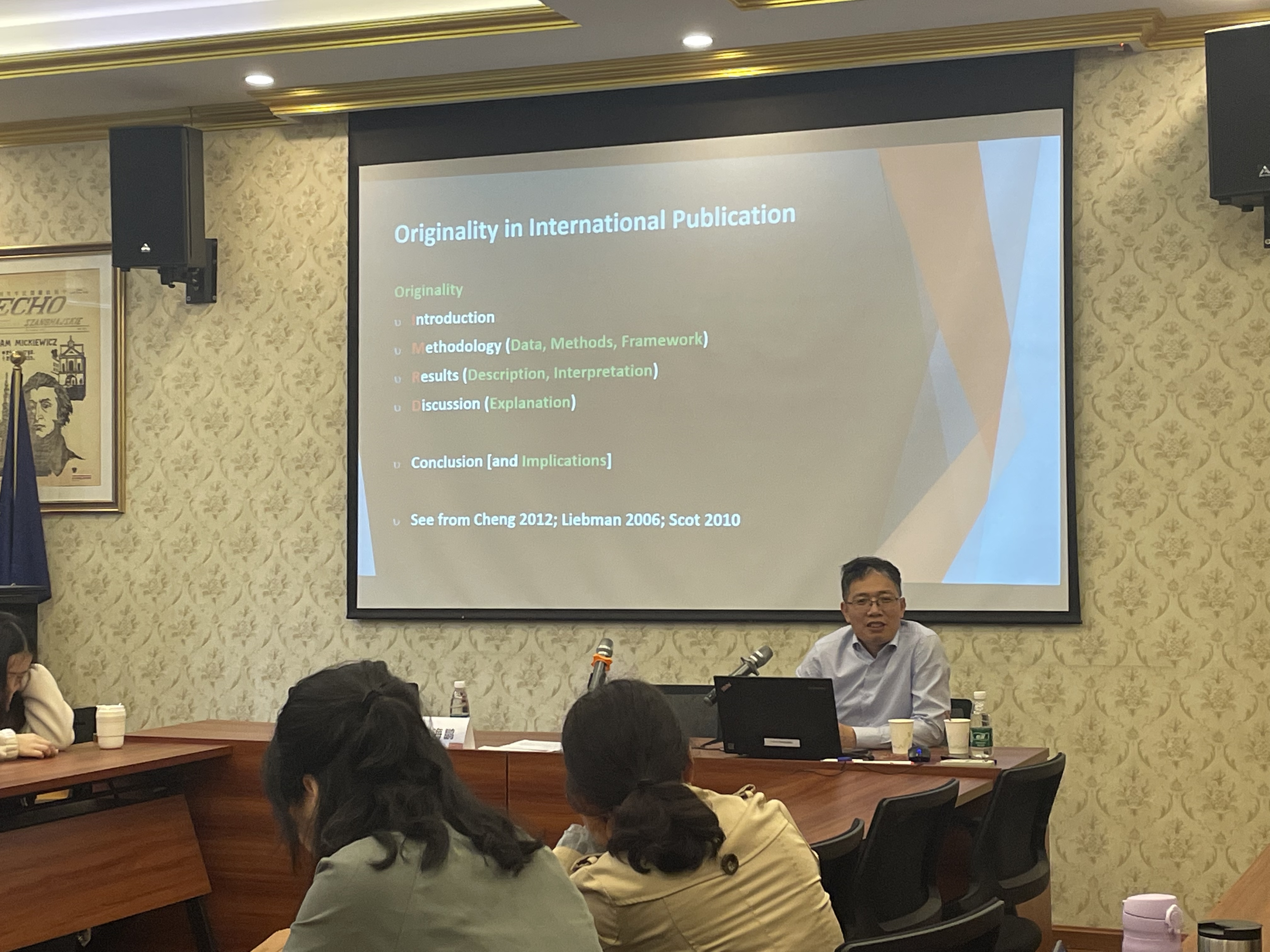 在工作坊活动中,程乐以他曾发表的学术论文进行了介绍,带领参与工作坊活动的师生们详细解读了关于国际期刊投稿及其高水平国际学术论文的撰写方法,他表示在投稿国际期刊时需要注意选题的前瞻性,针对性和有效性,并且在活动中针对外国语学院教师的具体提问进行了详细解答。