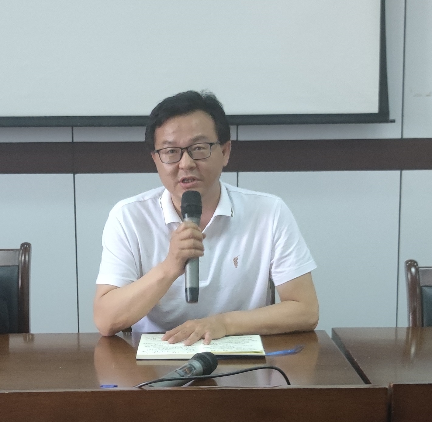 为深入学习贯彻习近平新时代中国特色社会主义思想主题教育,凝心聚力打好本科教学合格评估攻坚战,打通人才培养输出的“最后一公里”,5月5日下午,外国语学院在SC405召开全体教职工大会,回顾和总结2022-2023学年第二学期上半学期的工作情况,部署下半学期重点工作,会议由学院党委书记傅晓宇主持。