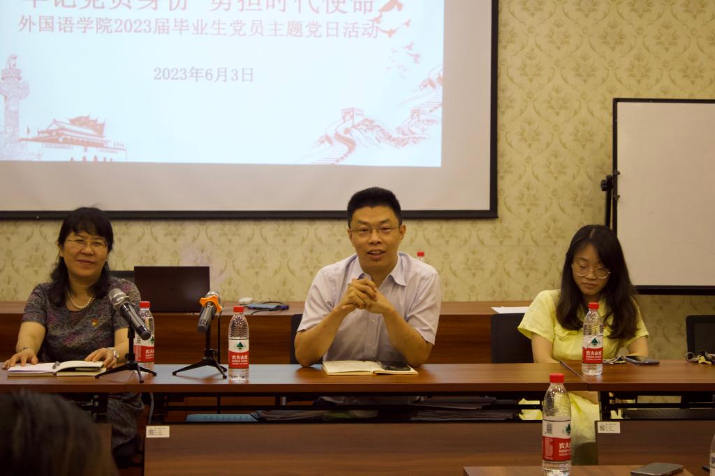 6月3日上午,外国语学院2023届毕业生党员主题党日活动在波兰研究中心举行。学院党委书记傅晓宇、党委副书记任凯、学工办全体辅导员、全体毕业生党员参加了活动。活动由英语191班曹颖主持。