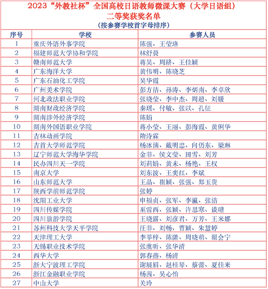 2023年7月14日,2023“外教社杯”全国高校日语教师微课大赛圆满结束。我院日语系谢展眉老师团队作品在众多优秀作品中荣获二等奖。