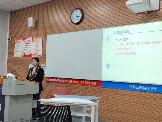 吴丹苹老师首先从自身出发,向同学们介绍了自己的漫漫读书路。她回顾了自己的学习生涯,从本科一路走来到博士的求学之路,分享了自己在学习中的喜怒哀乐,以及在面临困难时如何重新出发燃起斗志,继而一步步脚踏实地不断奋进的故事。接着吴老师着重阐述了科研的道与术,以深入浅出的方式向同学们介绍了如何找文献、如何读文献、如何做笔记以及如何更进一步通过自身的思考来汲取和提炼,从而形成自己的科研感悟和输出。吴老师以极其真诚的态度,与人为善的思想,以自己真实的学习和科研经历为例,循循善诱引导同学们习得、感悟和反思。与此同时她还特地强调了阅读的力量,分享了自己阅读和她学生阅读的体会,并向大家推荐了几本好书。