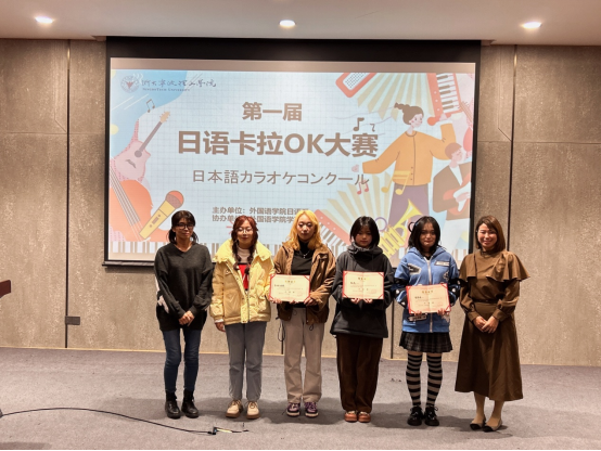 2023年12月15日晚,由外国语学院日语系主办、外国语学院学工办协办的第一届日语卡拉OK大赛圆满落幕。本次比赛旨在活跃日语专业学生的学习气氛,提升学生学习日语的积极性,共有十四位选手参赛,日语系主任李先瑞教授和主任助理谢展眉老师友情出演。参赛选手有日语专业的学生,也有英语系和其他学院的学生,经过激烈的角逐,最后英语系张可莹同学摘得桂冠,日语专业陈琦等三组选手获得二等奖。