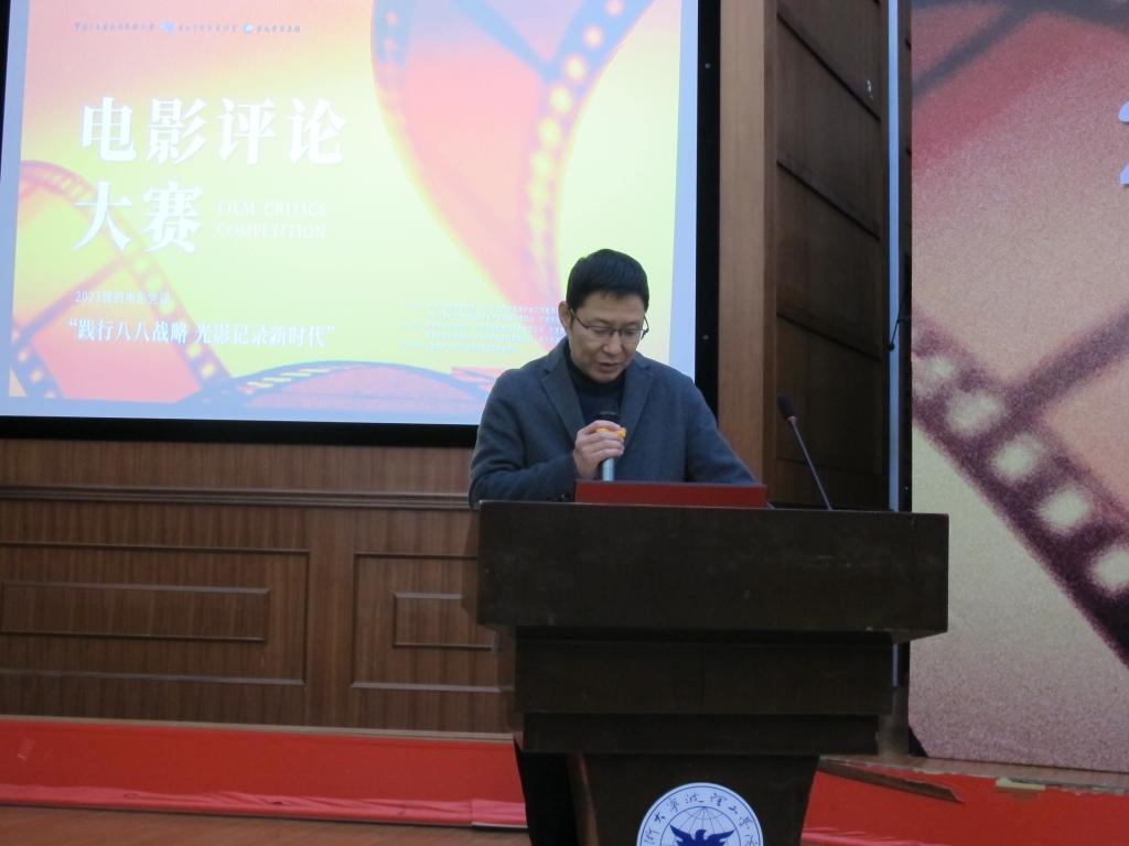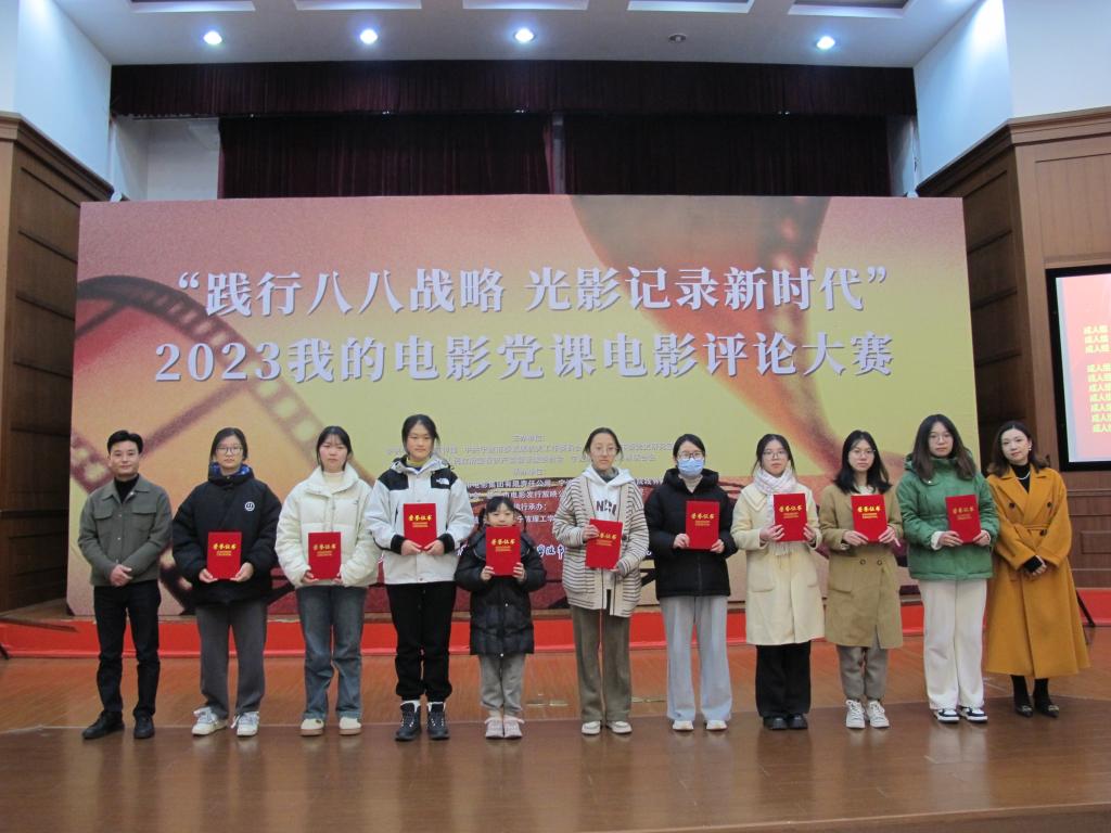 12月22日下午,“践行八八战略 光影记录新时代”宁波市2023我的电影党课电影评论大赛经过一个多月激烈角逐,在学校模拟法庭开展了颁奖典礼及优秀选手展演活动。宁波市委宣传部文艺和电影工作处调研员陈伟奋、宁波市电影家协会副主席吕军、宁波市电影家协会短视频专业委员会主任吴锐、宁波市电影集团有限责任公司党委委员樊肖英、学校宣传部副部长韩晶晶、外国语学院党委书记刘群娣、评委老师、获奖选手以及外国语学院党员、积极分子代表等200余人参加了活动。