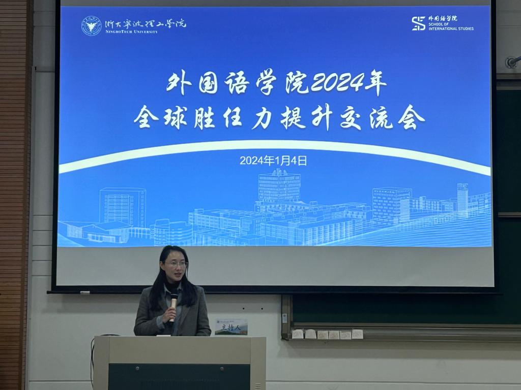 2024年1月4日下午6点,由外国语学院与浙大宁波理工学院招就处共同举办的全球胜任力提升计划交流会顺利召开。浙大宁波理工学院招就处副处长张硕,外国语学院院长助理林晶晶,外国语学院党政办外事秘书赵远,以及学院全体大一新生参加了交流会。本次交流会邀请到浙江大学就业指导与服务中心、学生职业发展培训中心胡昌翠,新东方留学规划师陆宁,外国语学院党政办科研秘书郑巍,以及英语202班李北、方旭薇两位同学进行全球胜任力提升的交流分享。