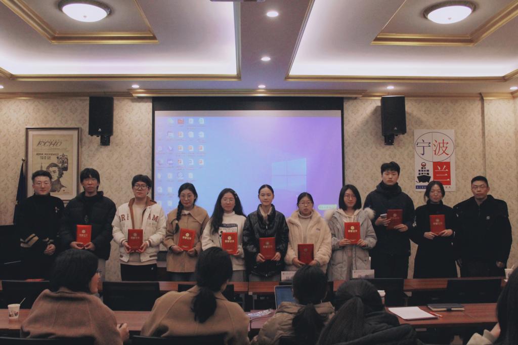 活动最后,刘教授和任老师一起为2023年度外国语学院立项的12个大学生科研项目颁发证书。