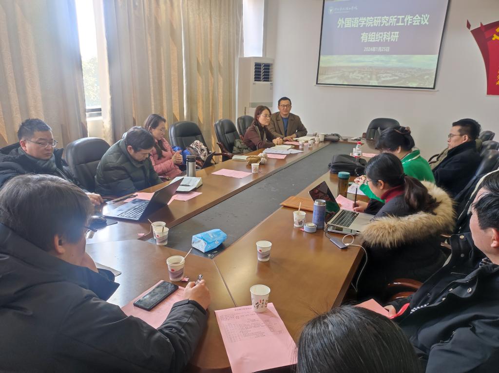 2024年1月25日,外国语学院以“有组织科研建设交流”为主题召开了研究所工作会议。学院党委书记刘群娣、执行院长蔡亮、院长助理林晶晶、学术委员会委员陆莺,各研究所和平台负责人参加了会议。会议由院长助理张华主持。