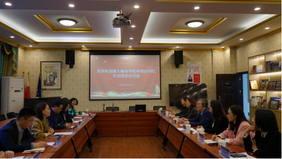 3月29日下午,浙大城市学院外国语学院院长马博森、党委书记戴笑笑一行9人来我院考察。学院执行院长蔡亮、党委书记刘群娣以及相关部门负责人出席座谈会。