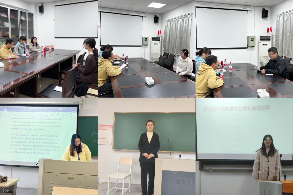 为帮助考研学生熟悉复试流程,掌握面试技巧,更好地应对升学复试,3月25日—29日期间,外国语学院组织开展考研模拟复试活动。此次活动由学院“工作问问看”工作室、国际胜任力培育基地牵头,英语系、日语系组织落实。英语系主任孙广平、李军、陆莺、程燕华、罗贤娴老师,日语系韩娜、蔡蕾、余祎延老师担任模拟面试官。
