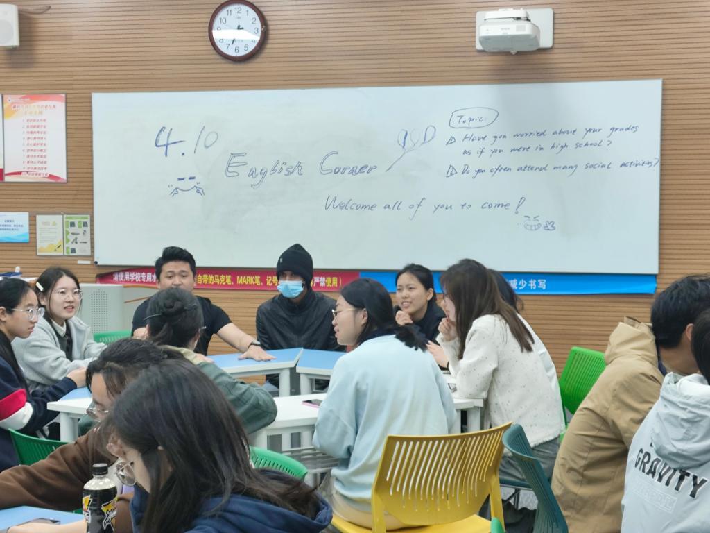 为了加强校园英语文化建设,丰富校园的语言氛围,激发广大学生学习英语的热情,培养他们的语言表达能力和跨文化意识,外院口语社于4月10日18:30在智慧教室NB107举办了一场以大学生活和体验为主题的英语角活动。