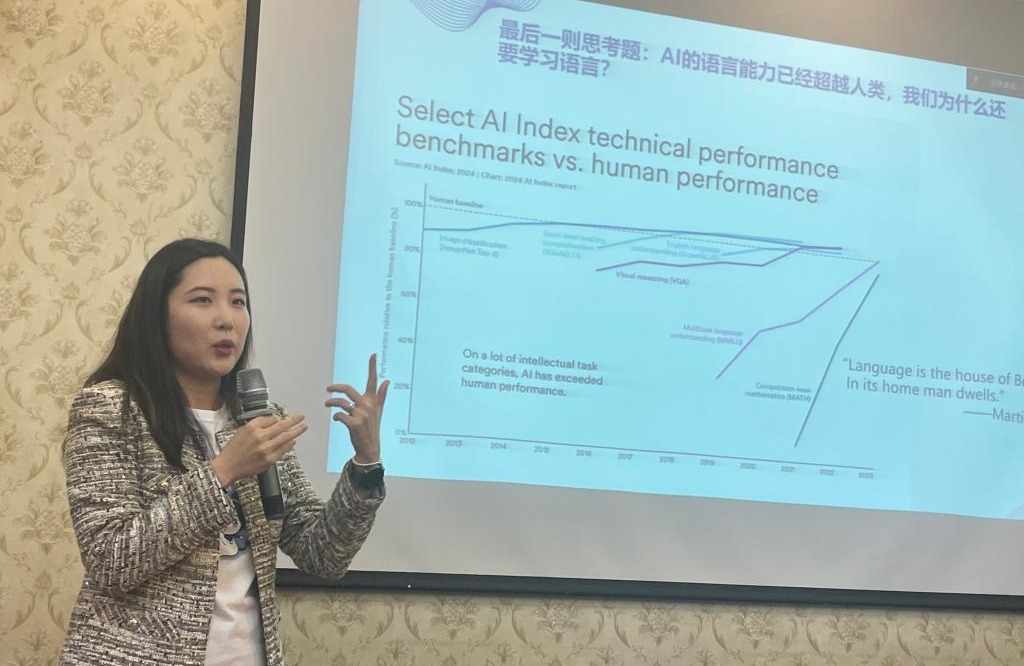 徐曼语女士以《外语专业职业发展的N种可能》为题,分享了一位“外语人”的学习和求职经历,通过讲述自己在华为集团“升级打怪”的成长经历,鼓励同学们打开思路、在产业升级的时代浪潮中跳脱传统局限,勇于尝试。张若菲女士通过在线讲座的形式进行了《成就你的翻译之道》主题分享,传授如何打造翻译人才需要具备的抗压能力、灵活应变能力、危机处理能力、毅力和战斗力五项“软实力”,鼓励同学们主动拥抱AI等人工智能,用科技赋能助力个人职业发展。陈荣荣女士以《我的西行漫记》为题,结合自己在西班牙遭遇诈骗后,如何在没有学费生活费的困境下通过勤工俭学一步步成长为创立西班牙环球教育公司“女霸总”、实现财富自由的传奇经历,鼓励同学们行学结合、坚持梦想。讲座中,与会学生围绕“外语专业学生全球胜任力实践获取路径”“人工智能下的翻译人才职业素养准备”、“考研、出国、就业选择”等主题与三位主讲嘉宾互动交流,积极提问,三位嘉宾也予以耐心细致的解答,现场气氛热烈。学校国合处副处长程萌对活动进行了总结,对三位分享嘉宾表示了感谢,鼓励同学们珍惜青春年华,以专业为基础,在实践中培养并提升全球胜任力。