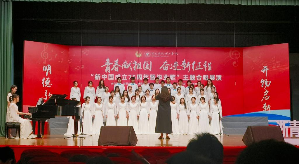“青春献祖国,奋进新征程”,为庆祝新中国成立75周年,深化校园思想文化建设,凝聚美育合力,进一步激发大学生的青春活力和爱国热情,同时为即将开启新征程的毕业生送上一份特别的祝福。6月11日晚,“新中国成立75周年暨毕业歌”主题合唱展演在可珍讲堂隆重举行,外国语合唱队参加此次展演。
