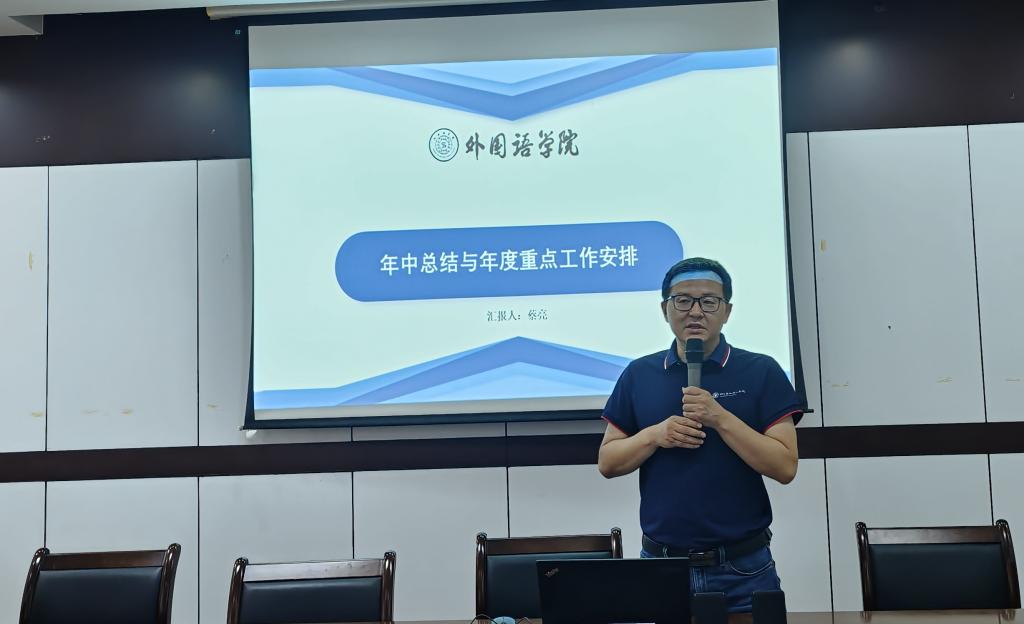 会上,学院执行院长蔡亮作了2024上半年度工作总结及下半年度工作部署。蔡院长指出,上半年在全院上下共同努力下,学院在人才培养、科学研究、师资队伍建设、社会服务等各项工作得到有效推进,学院在浙江省普通本科高校“十四五”第二批四新重点教材建设项目中获批9本,学院青年教师在省教创赛获得省级二等奖,学院积极申报国家语言文字推广基地,与企业联合开展研究,争取到大额基金资助,将围绕基础设施建设和优秀企业案例研究方面开展工作。下半年学院将继续在翻译学专硕申报、区域国别学硕点筹备、中欧国际人才特色班建设、学院更名转型、基地建设和研究院申报建设等方面持续推进落实,奋力突围,期待全院上下继续开拓创新,扎实工作。