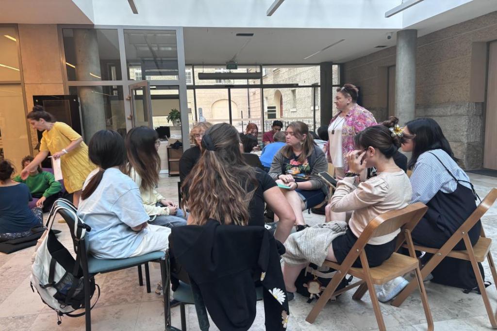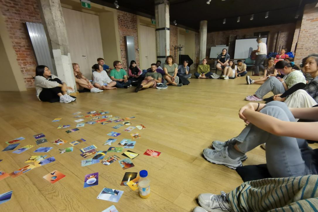 除此之外,还囊括新闻工作坊、舞蹈工作坊、戏剧工作坊、语言工作坊内容,学生可自由选择感兴趣的内容参与其中。在7月31日举办的语言工作坊中,Emilia老师带领不同国家和文化背景的学生参与,就文化自信的内涵、表现形式、国家自信以及其表现形式进行了热烈的讨论。同学们踊跃参与,表达自己过国家、对文化的认可度以及在交流过程中对其他国家文化的尊重与认可,并通过卡片游戏,由图见意,通过理解抽象的卡片图画来联系自己国家文化,来向大家展示自身国家文化。