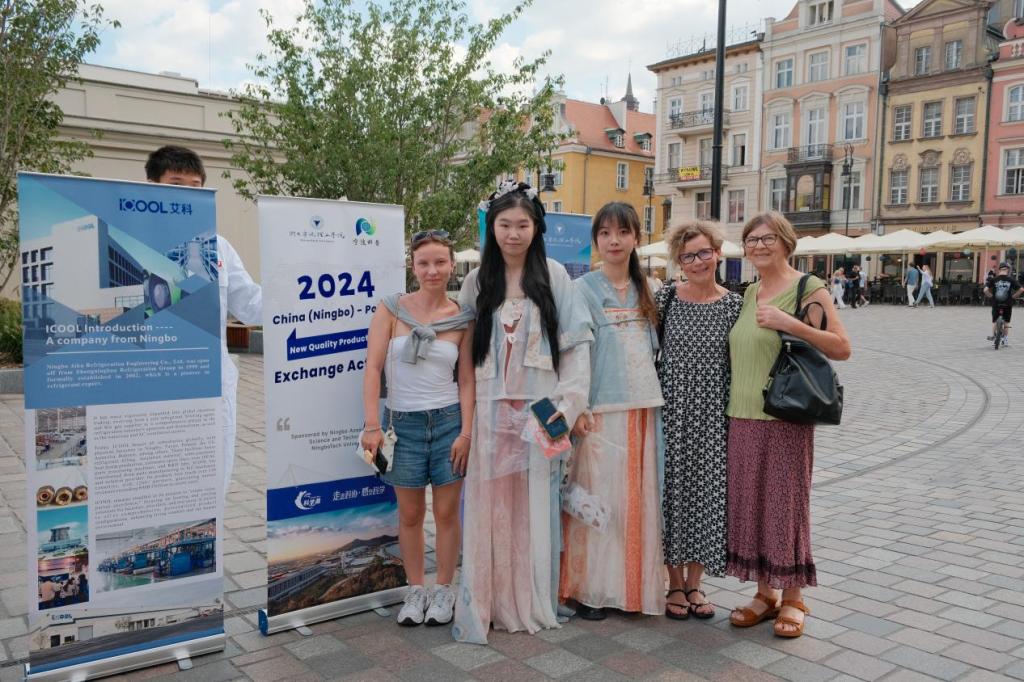 2024年8月3日,宁波市科学技术协会支持的科普类活动“中国(宁波)--波兰新质生产力双向科普交流活动”亮相波兰老城广场,12位浙大宁波理工学院的学子组成的波兰科普小分队身着中国传统服饰以及港船公司提供的工装为波兰市民开展了一场关于中国文化与中国新质生产力企业展示的快闪活动,吸引了众多波兰人民的目光,其中浙东文化、宁波城市风貌、我校概况、中国制造的中东欧特色品牌均借此机会在波兰市民中大放异彩。