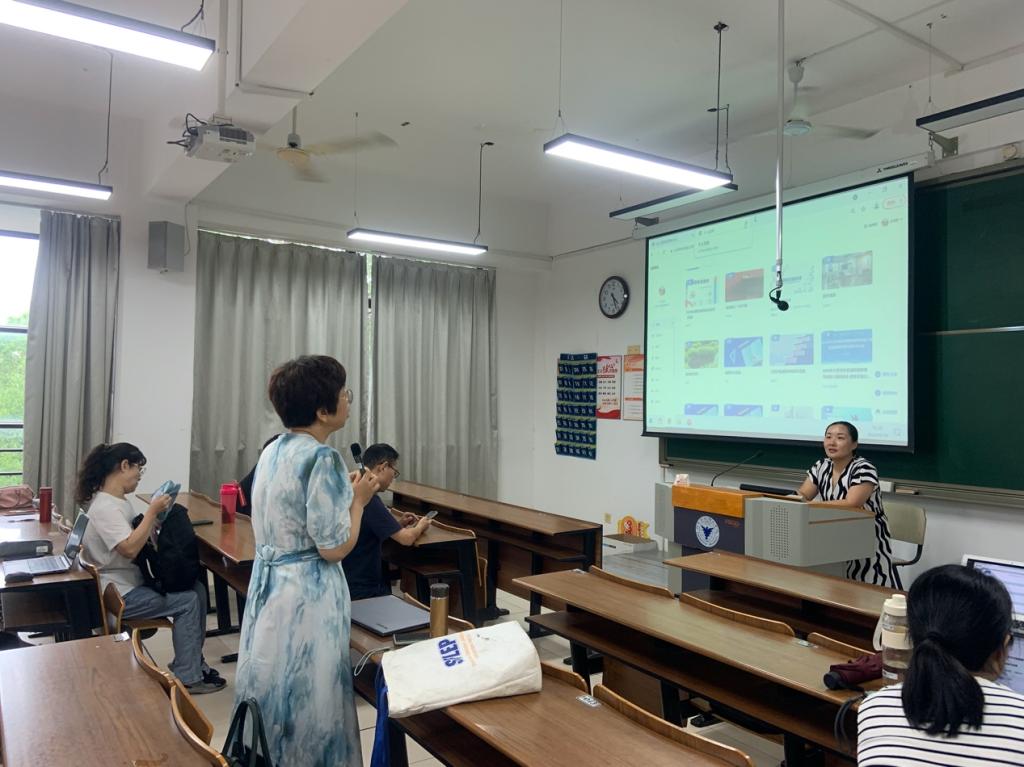 在交流互动环节,老师们就如何搜索英语资源、AI工具与外语学科的适应性等问题积极提问,王老师对这些问题都给予了耐心且详细的解答。此次培训不仅增强了教师们对学习通平台AI教学工具的认识,也为外国语学院的教学创新和质量提升奠定了坚实的基础。