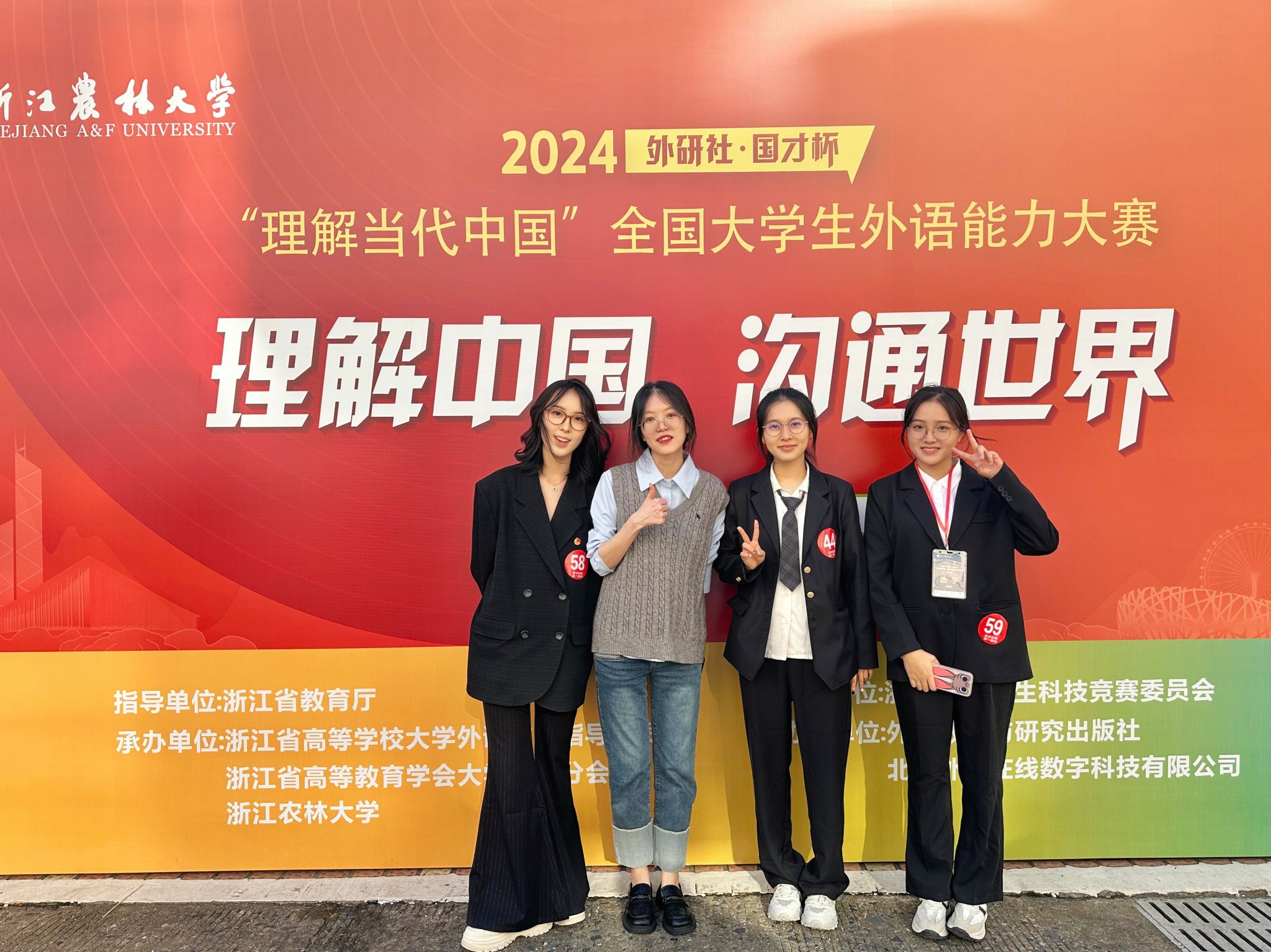“外研社·国才杯”“理解当代中国”浙江省大学生外语能力大赛是原“外研社·国才杯”浙江省大学生英语演讲与写作大赛的全新升级赛事。赛题围绕习近平新时代中国特色社会主义思想核心内容展开,旨在培养更多有家国情怀、有全球视野、有专业本领的时代新人,对推动创新课程思政、深化外语教育改革、培育外语人才、讲好中国故事、服务国际传播具有重要意义。本次大赛由浙江省大学生科技竞赛委员会主办,浙江省高等学校大学外语教学指导委员会、浙江省高等教育学会大学外语分会及浙江农林大学承办,设有六大赛道,其中短视频赛道于10月11日结束,多语种组以及读写、笔译省级决赛分别于10月19日、26日线上举行,口译、演讲决赛于11月1-3日在浙江农林大学举行。本次竞赛指导教师团队由邓丽静、李继宏、林晶晶、陆莺、茅忆年、谢展眉、周维等教师组成,备赛过程得到了学院领导及系部老师的大力支持与帮助。
