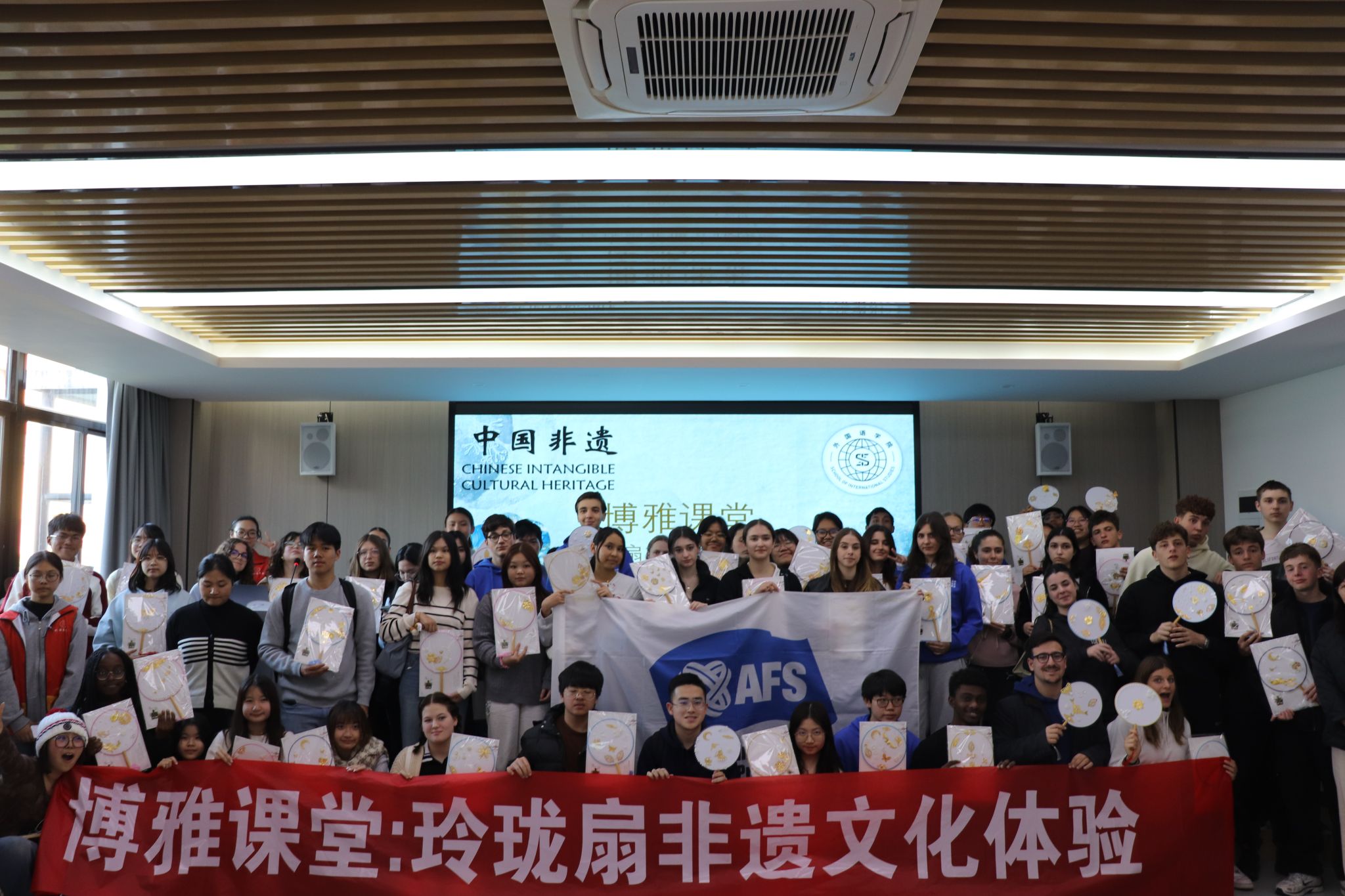 12月2日中午,SC405会议室热闹异常,博雅课堂迎来了67位外籍师生体验玲珑扇非遗制作活动。本次活动由国合处、外国语学院联合举办。