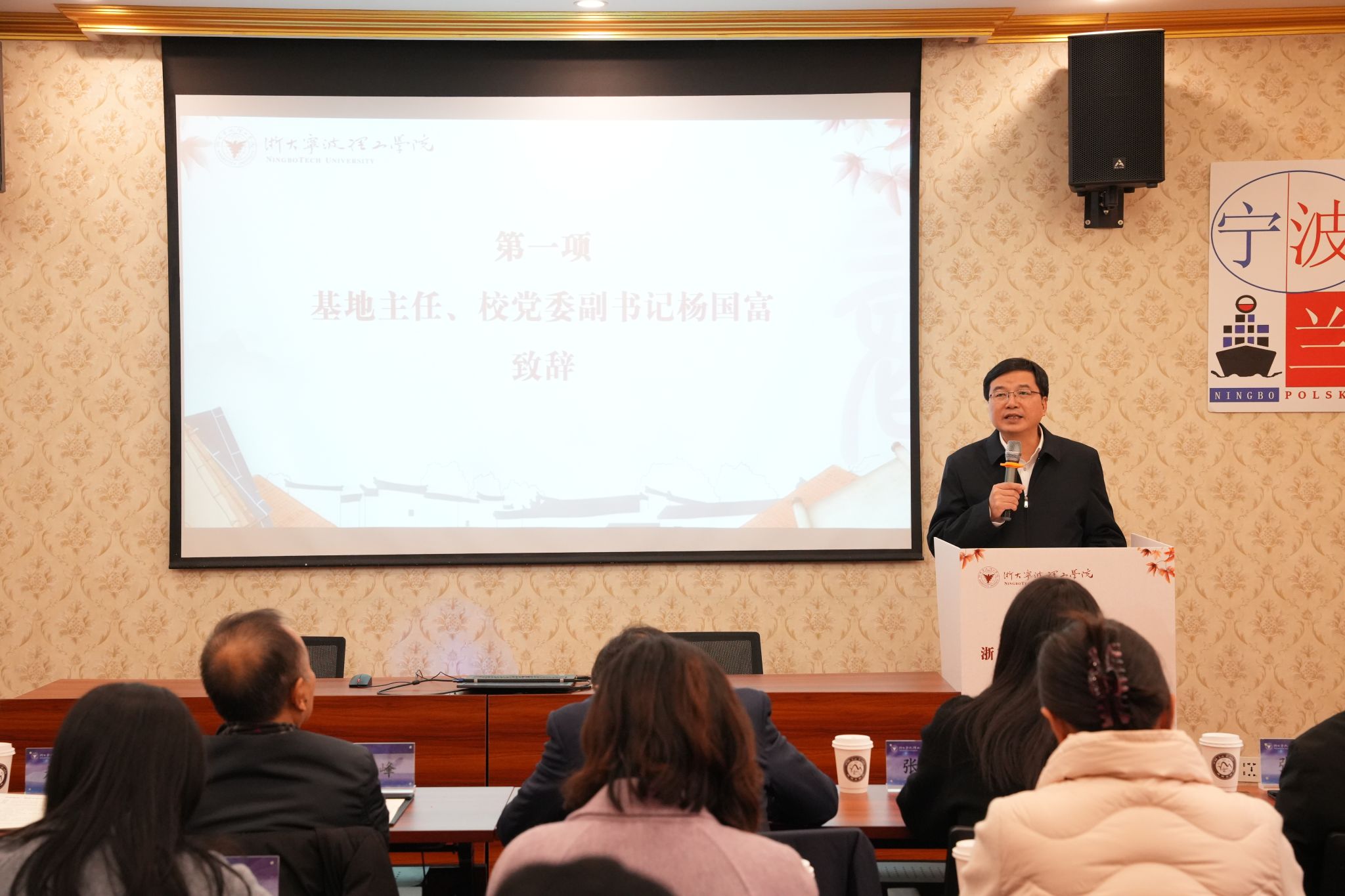 杨国富副书记作为基地主任在会议上致辞。他指出语言文字是文化的基石,承载着民族的智慧与情感;浙东文化源远流长,如璀璨明珠闪耀在历史长河。今年8月,中国语言文字(浙东文化)传承推广基地获批浙江省首批语言文字推广基地,今天举行成立仪式和学术研讨,表明了学校对基地建设的重视和决心。学校将认真听取专家学者的意见和建议,深入挖掘浙东文化的内涵,创新传承推广的方式方法,让浙东文化在新时代焕发出更加耀眼的光芒。
