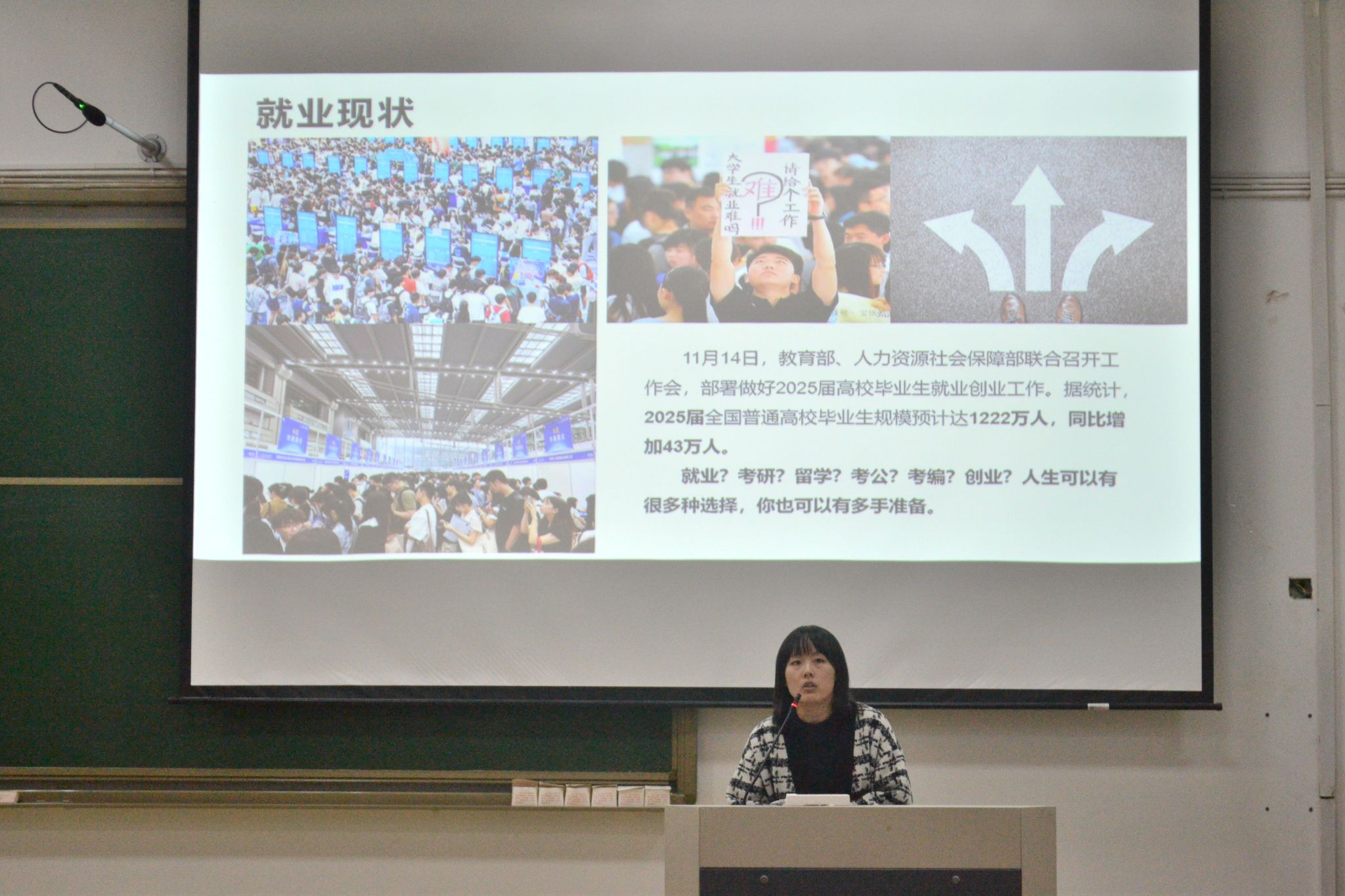 会议伊始,刘群娣老师作就业动员讲话。她深入且详细地剖析了当下严峻而复杂的就业形势,着重强调外语专业的学子们凭借其扎实的语言功底、跨文化交流能力以及广阔的国际视野,在竞争激烈的就业市场中占据着独特优势,应当满怀自信地展现个人才华与专业素养。并进一步提出了一系列极具前瞻性与针对性的对策建议,涵盖求职心态调整、职业技能提升、目标企业与岗位选择、诚信就业、增强防范意识、注意信息安全等多个关键维度,助力同学们在求职道路上稳健启程、逐梦远航。