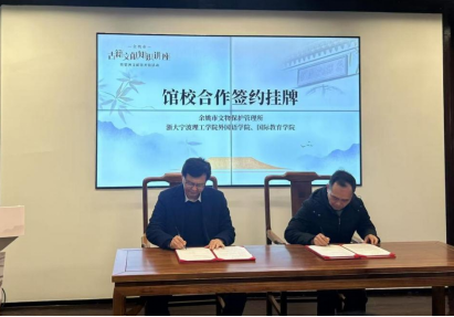 2024年12月28日,浙大宁波理工学院外国语学院、国际教育学院与余姚市文保所在梨洲文献馆开启姚江文化国际传播基地共建签约仪式,正式建立“姚江文化国际传播基地”,并设立“姚江文化海外文献工作室”。这一合作标志着浙大宁波理工学院外国语学院、国际教育学院与余姚市文保所合作开展姚江文化海外文献的整理、征集、传播和研究等工作。