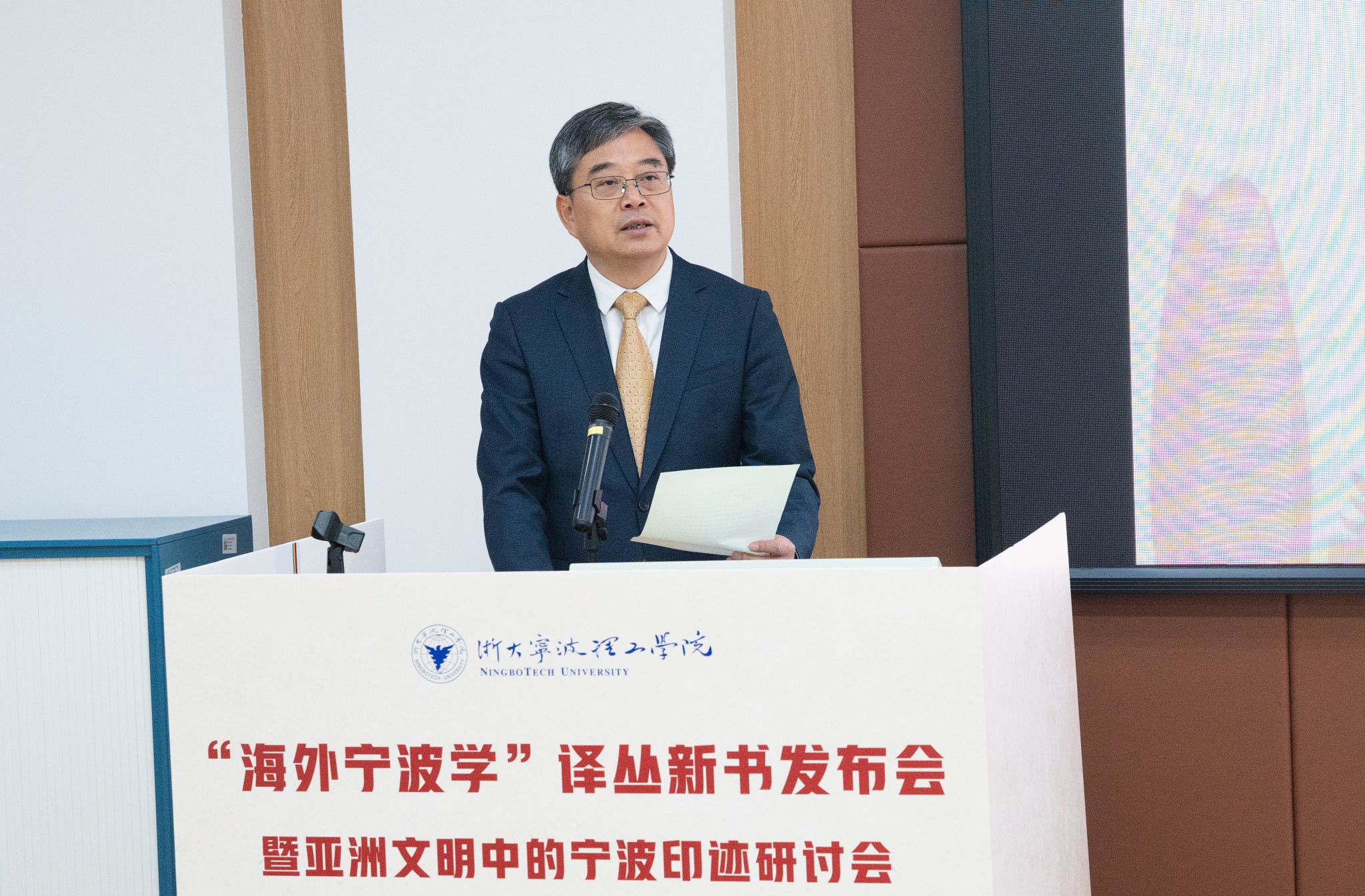 为贯彻落实宁波市委《关于繁荣发展港城文化 更好担负起新时代的文化使命 加快建设高水平文化强市的行动方案》,积极响应加快建设高水平文化强市动员部署会暨全市宣传思想文化工作会议精神,2025年3月14日下午,由浙大宁波理工学院、浙江大学出版社联合主办的“海外宁波学译丛”新书发布会暨亚洲文明中的宁波印迹研讨会在浙大宁波理工学院学术交流中心举行。宁波市委宣传部、宁波市社科联等指导单位,来自中日两国的知名学者、文化界代表及高校师生齐聚一堂,共探宁波在亚洲文明交流中的历史地位与当代价值。