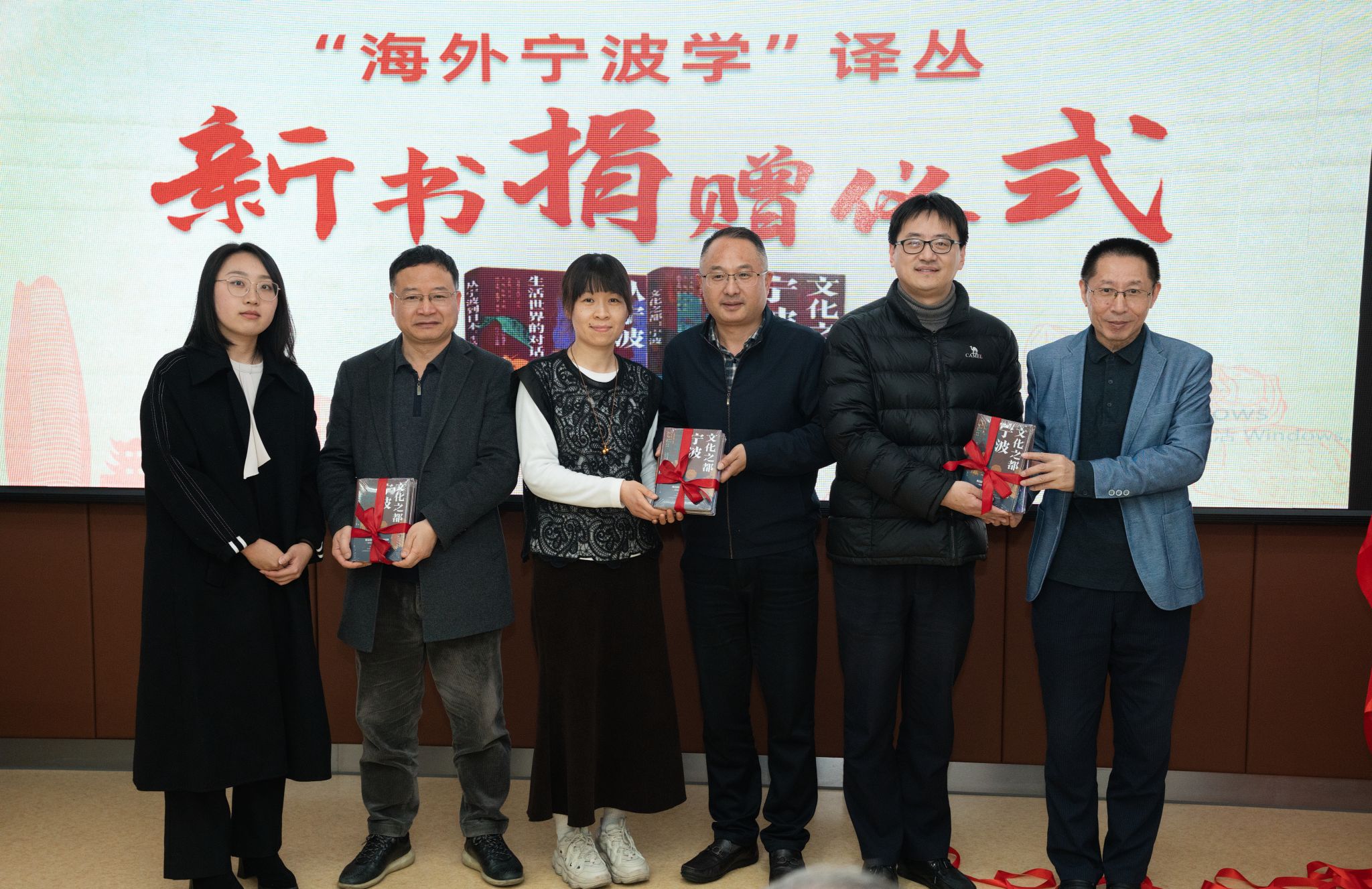 为推动研究成果的公共传播,发布会特别设置图书捐赠环节。译者代表蔡蕾博士、谢展眉博士、李广志教授,向宁波市图书馆、鄞州区社科院、浙大宁波理工学院图书馆等受赠单位捐赠新书,以推动研究成果的公共传播。