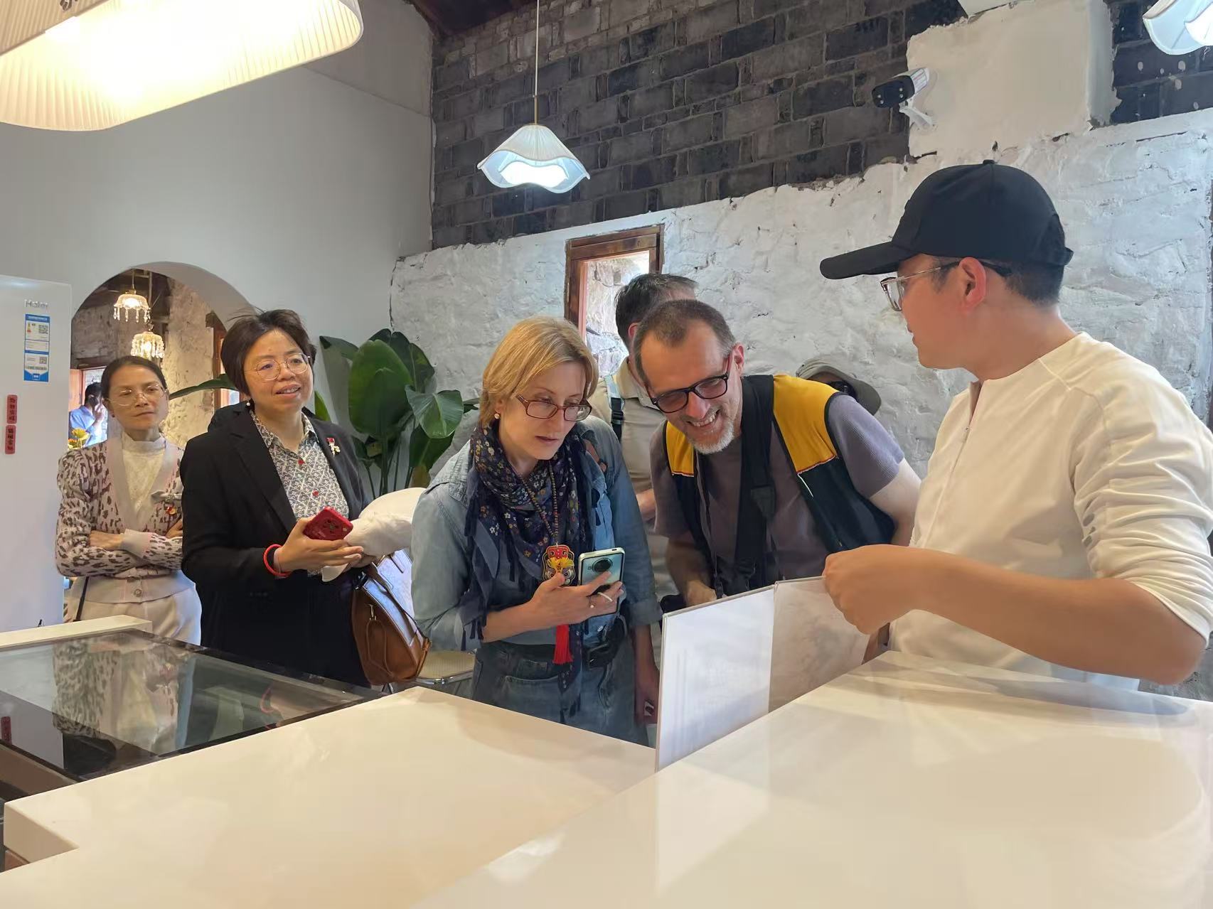 在葛家村国际乡建艺术基地,也是以Magdalena命名的“玛格达小屋”,双方围绕“组织联建、文化共创、实践育人、国际传播”等主题,就如何发挥高校优势,进一步整合师生资源、助力葛家村打造“国际传播矩阵”、多模态多渠道向全球讲述中国乡村故事进行了交流,并就如何引导大学生运用专业知识赋能葛家村乡村振兴提出了工作举措。此次调研将推动更多师生走进葛家村,通过“红色根脉强基工程”与“乡村文化振兴行动”的双向奔赴,构建“党建红”引领“乡村美”的可持续发展生态。