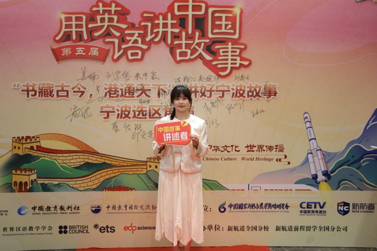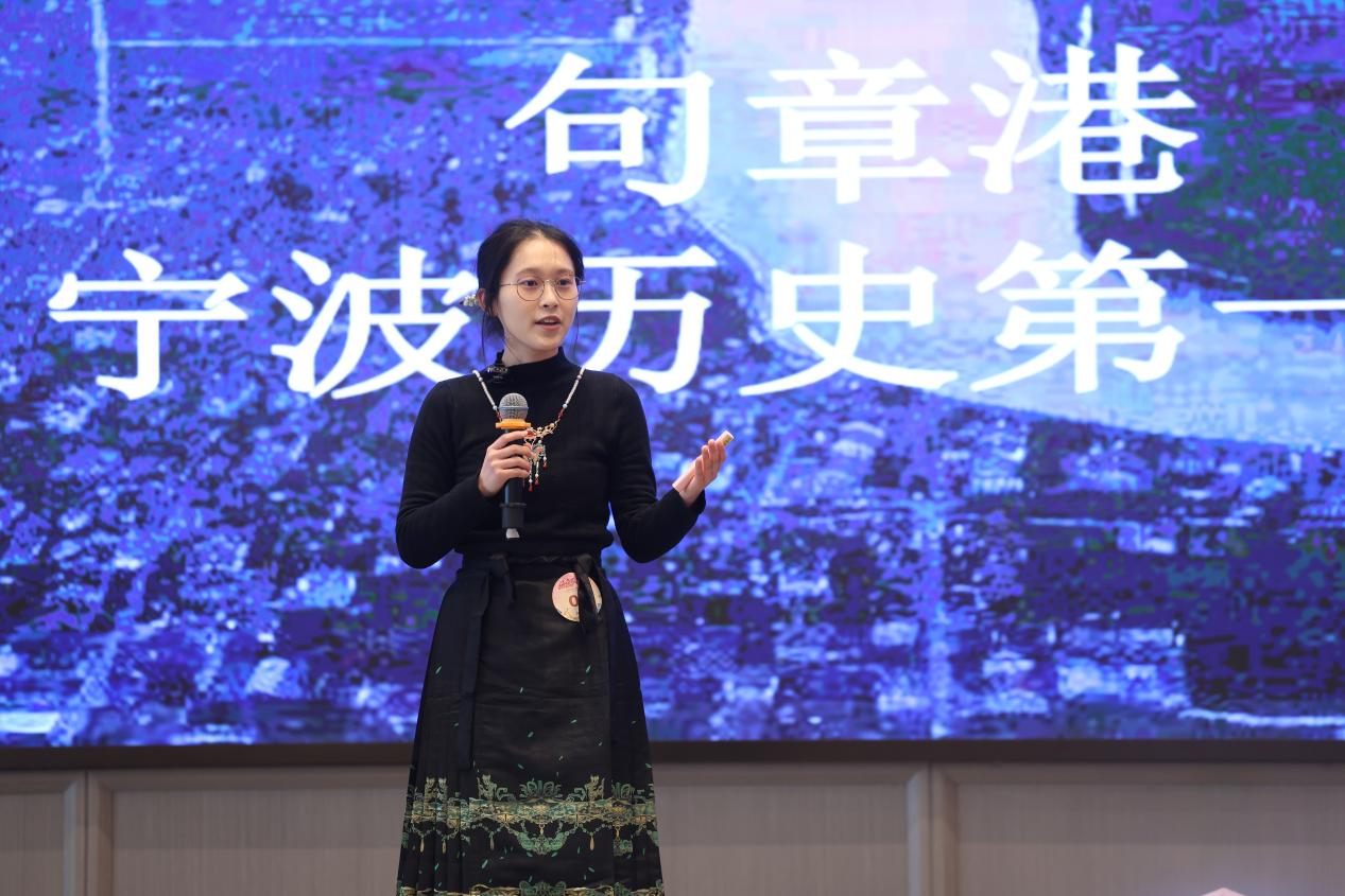 柳雨欣同学讲述了宁波商人严信厚在19世纪末面对港口贸易冲击时,以“勇立潮头”的气魄引进西方技术,创办中国首家现代化纺织厂,展现宁波港城“敢为人先”的创新开拓精神。