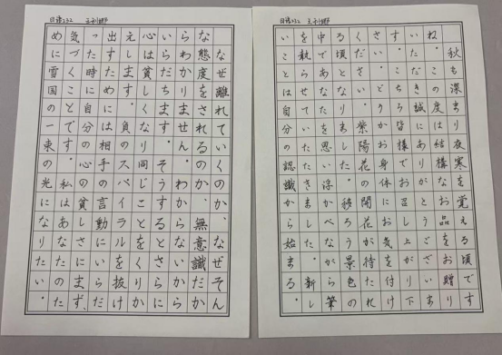 为丰富校园文化生活、营造校园文化气氛、提升个人文化素养及审美情趣、为我校大学生提供自我展现的平台,外国语学院日语系于4月下旬组织举办了2025年日语书法大赛。本次比赛报名踊跃,共收到来自于日语、英语以及智能制造、能源、财务管理、新闻传媒等不同院系不同专业同学的近一百份作品。日语教研组秉承严肃公平的评审原则,兼顾学生专业起点的不同,从众多的作品中评选出特等奖1名,一等奖3名,二等奖5名,三等奖8名。