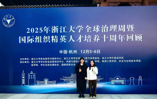 为响应国家关于加强国际组织后备人才培养的号召,积极提升青年学子参与全球治理的综合素养,12月5日至6日,外国语学院选派学生代表柳雨欣和姜语嫣赴浙江大学参加2025年“全球治理周暨国际组织精英人才培养十周年回顾”活动。据悉,此次“全球治理周”吸引了北京外国语大学、上海交通大学、湖南师范大学、浙江工业大学、浙大城市学院等省内外兄弟高校的百余位师生代表参与。论坛举行期间开展了全球治理专题讲座、高校青年论坛、国际组织生涯规划等系列活动。