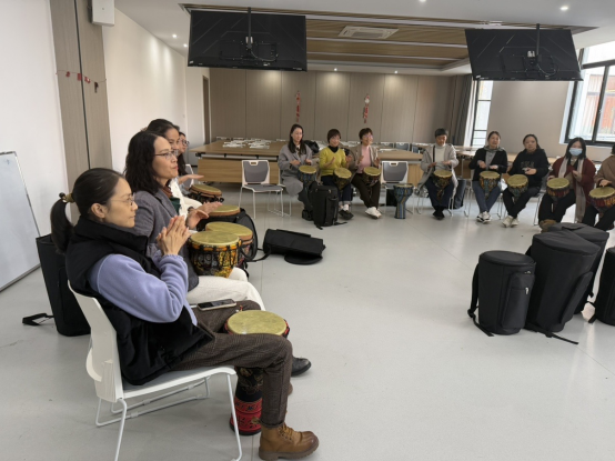 除了音乐体验,活动更让大家收获了多重成长:连续的击打动作让不少人感受到手部穴位的酸胀感,体会到“活络经脉” 的健身效果;稳定的鼓点节奏让大家紧绷的神经得到舒缓,“压力好像随着每一次击打都释放出去了”。