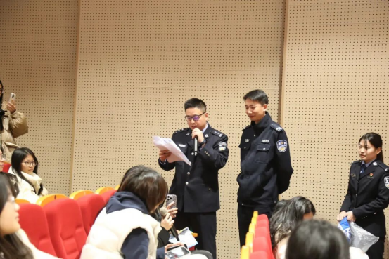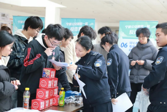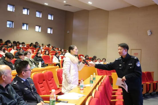 为提升师生反诈防骗意识和自我保护能力,2025年12月18日下午,浙大宁波理工学院外国语学院联合钟公庙派出所,以“宣讲+互动问答”的创新形式开展反诈宣传活动,此次活动是警校双方党建联建的重要实践,也是创新校园安全教育形式的一次有益探索,近300名师生参与活动,反响热烈。