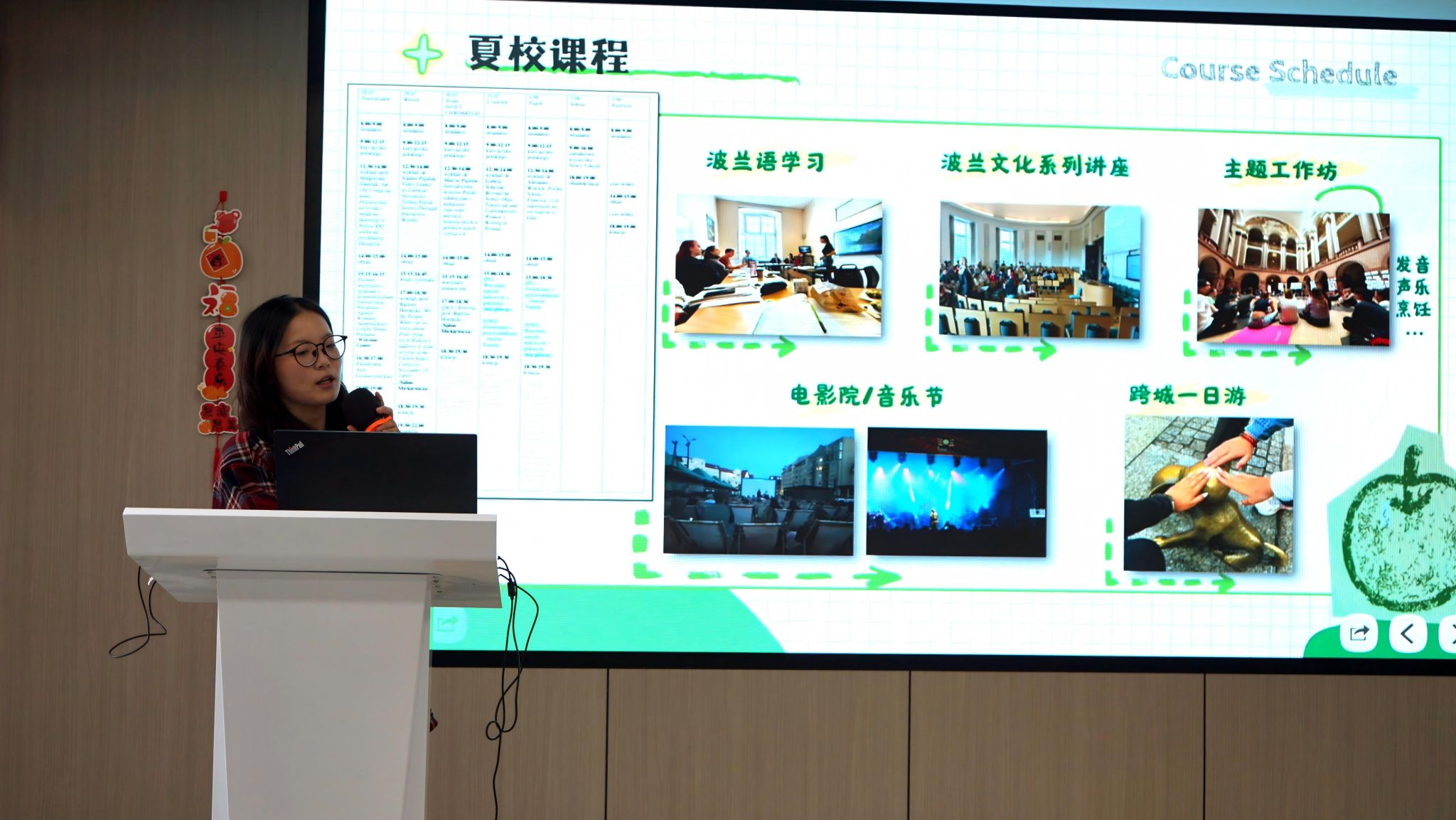 会上,波兰团组负责人吴虚怀老师深入介绍了波兰以及波兹南亚当密兹凯维奇大学的基本情况和特色优势,详细阐述了明年暑期项目在语言学习、文化体验、学术研讨等方面的课程与活动内容。日本团组负责老师邓凌志从日本文化、当地习俗等方面进行分享,并介绍了交流期间丰富的课程与集体活动。两位老师还就2026年团组招生计划进行了预宣传。