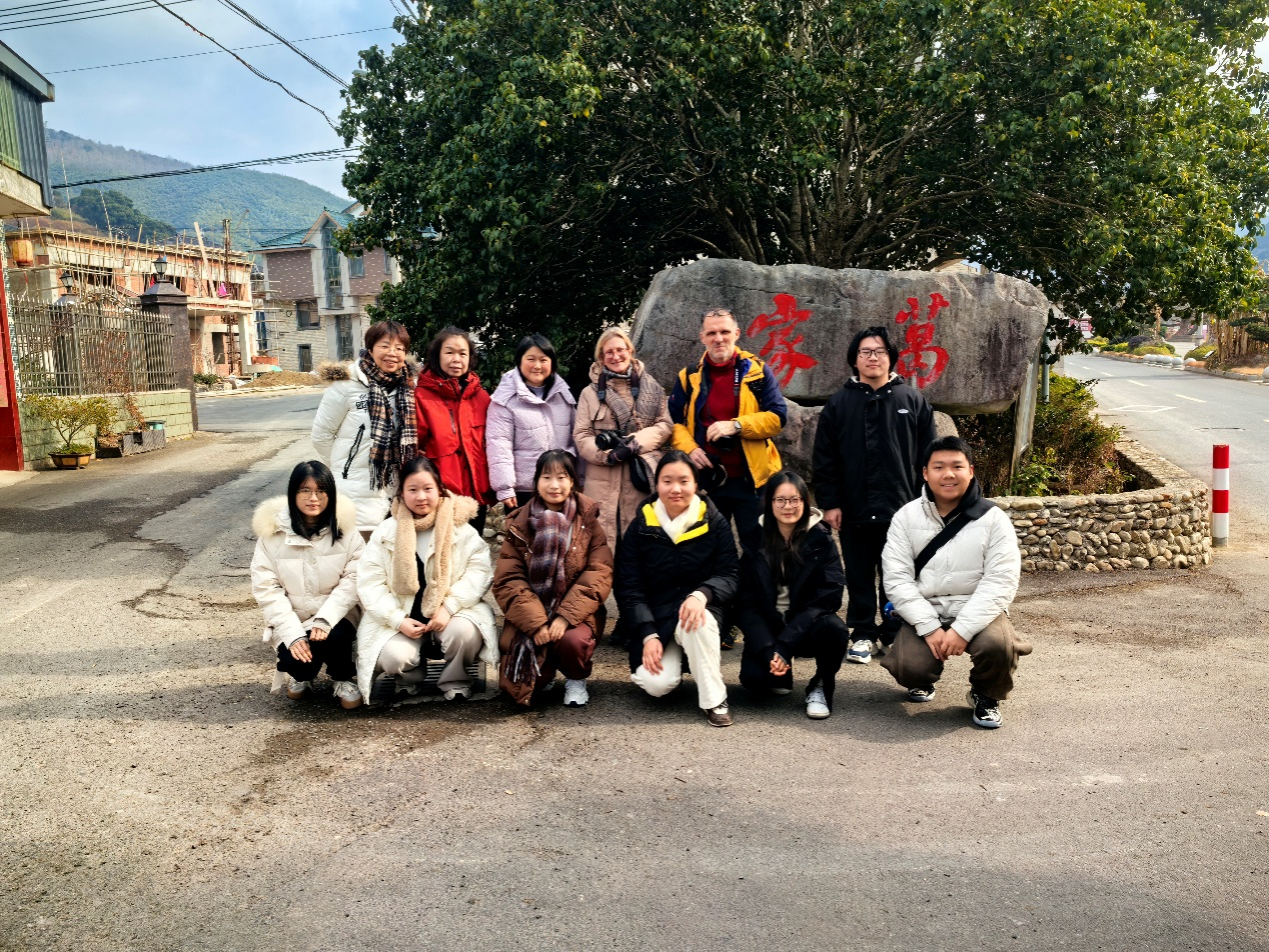 继此前赴宁海葛家村开展“党建引领+专业赋能+国际视野”三维联动调研,搭建校村合作初步框架后,近日,浙大宁波理工学院外国语学院第一教工支部书记王欢老师带队,携“葛声潮涌”团队成员及外籍教师Magdalena Gimbut博士和Artur Rega博士等再次走进葛家村,围绕乡村医康养产业升级与国际传播建设开展深度调研。调研组与葛家村负责人座谈交流、共商合作新路径,并实地探访村落业态布局与建设现场,在前期合作基础上,进一步深化校村联动,推动外国语学院专业优势与葛家村产业发展深度融合,为乡村振兴的国际化传播再次注入高校力量。