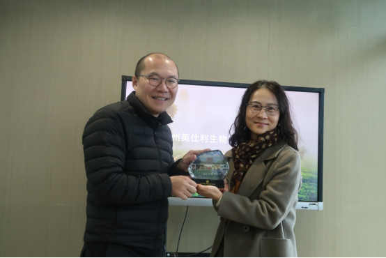 为深化校友联络,精准对接企业需求,探索“语言+产业”产学研融合新路径,2026年1月26日,学院执行院长蔡亮、党委书记刘群娣带队前往杭州英仕利生物科技有限公司进行专题调研,并实地参观了浙江大学茶叶研究基地。公司董事长、学院2011届中美英语专业校友夏琛全程热情接待并陪同交流。