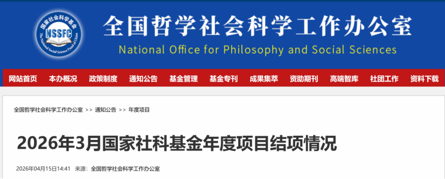 国家社会科学基金项目是我国哲学社会科学领域最高、具权威性与竞争力的科研项目。根据全国哲学社会科学工作办公室数据显示,2026年1-3月验收的1864项国家社科基金年度项目结项申请通过率为73%,优秀率为11.2%,其中3月份81项结题“优秀”项目中,语言学类为8项。